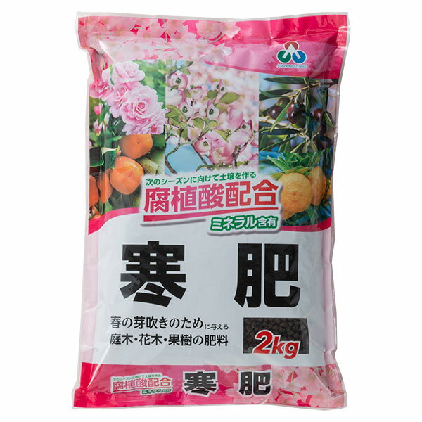 かんごえ・かんぴ 12〜2月に花木や庭木の冬の元肥 2.9-3.5-1.6寒肥2kg 3袋セット寒肥は植物が休眠している冬の間に施す肥料です。 緩効性の化成肥料や遅効性の有機質肥料を果樹や花木、庭木に施します。 冬の間にゆっくりと分解された有機成分は、土壌にたっぷり蓄えられます。 春の育成期になると、この栄養分は速やかに吸収され、植物の生長を促します。 施肥の適期は12月〜2月頃です。 N-P-K=2.9-3.5-1.6下記の微量要素が含まれています。 ・ケイ酸(4.17%):茎・葉が丈夫になり、耐病虫性が増します。 ・マンガン(91.7ppm):葉緑素やビタミンの合成に関与します。 ・ほう素(11ppm):新芽や根の育成を促進します。 ・モリブデン(0.8ppm):ビタミンの合成に関与します。 ・鉄(90.4ppm):葉緑素を作ります。 1袋2kg入り。 固形の中粒です。 使用量の目安:樹高約1m未満の樹木:50〜80g樹高約1m以上の樹木:200〜250g※植物の大きさや品種により施肥量を増減してください。 お届けするのは3袋です。 寒肥2kg 3袋セットの栽培ガイド寒肥 寒肥2kg 3袋セット 2,284 ~