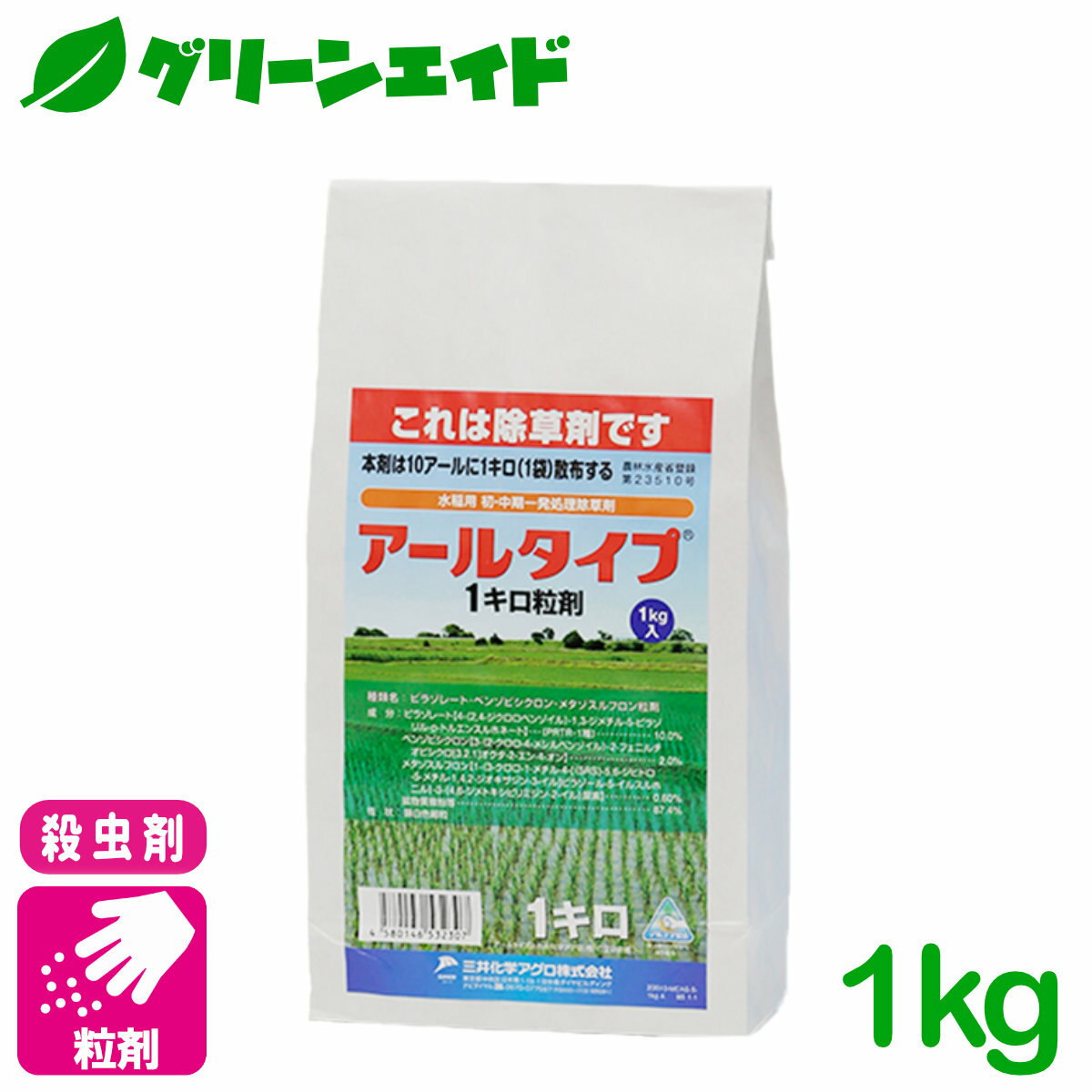 商品情報有効成分ピラゾレート10.0%、ベンゾビシクロン2.0%、メタゾスルフロン0.60%内容量1kg用途水稲用除草剤製品特長・移植時から使用できる水稲用一発除草剤です。 ・有効成分メタゾスルフロン配合で、クログワイ、ホタルイ等の多年生雑草を根から抑えます。 ・ALS阻害剤抵抗性雑草(アゼナ、コナギ、ホタルイ等)にも高い効果を発揮します。 ・畦畔から侵入するイボクサ等にも優れた効果を示します。 検索キーワード:水稲除草剤 1キロ粒剤 稲作 農業 農薬 園芸 家庭園芸 農家向け \本日開催!全品ポイント5倍キャンペーン実施中!/ぜひこのお得な機会にお買い求めください! アールタイプ1キロ粒剤 1kg 三井化学アグロ 移植時から使用できる水稲用一発除草剤! 2 \本日開催!全品ポイント5倍キャンペーン実施中!/水稲除草剤 アールタイプ1キロ粒剤 1kg 三井化学クロップ&ライフソリューション 初中期一発 稲作 農業 農薬 2,980 ~