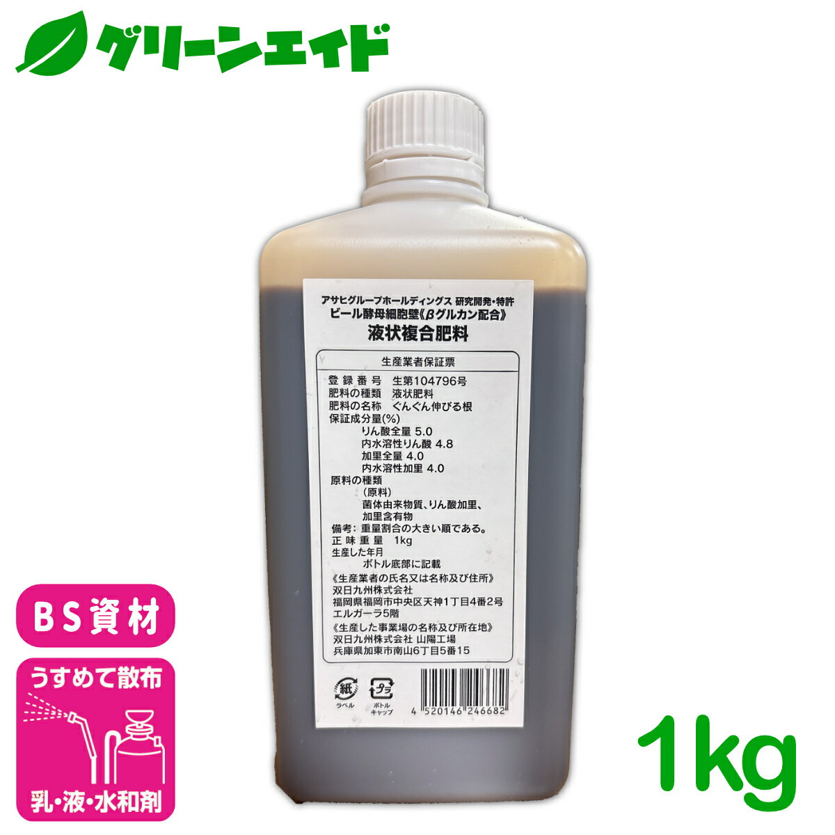 1.植物生育に必要な成分をバランスよく含む活性液です。 2.肥料の肥効促進やリン肥料の有効利用を促進し農作物の増収と品質を向上させます。 3.土壌の保肥力の増大させたり土壌微生物の活発化や土壌の団粒構造化を促します。 <用途> ●植物の土壌ミネラル吸収をキレート化により補助します ●種子・苗… 発芽率の向上 ●茎・葉…… 光合成能力向上、有機物質の分解促進 ●根………… 根張り、根粒細菌・根圏微生物の増殖、吸収力の増大 <使用法> ◆葉面散布…親株・育苗・仮植・収穫時 ◆浸漬…種子・根部(定植時) ◆灌注…定植時 ◆塗布…切り口 ※植物のミネラル補給として葉面散布 ※堆肥化中の水分調整に散布 有機農業:使用可 ※北海道・沖縄・離島は別途中継料がかかります。 ※季節商品のため、在庫切れ及びお届けまでお時間いただく場合がございます。 お急ぎの場合は在庫確認等お問い合わせください。