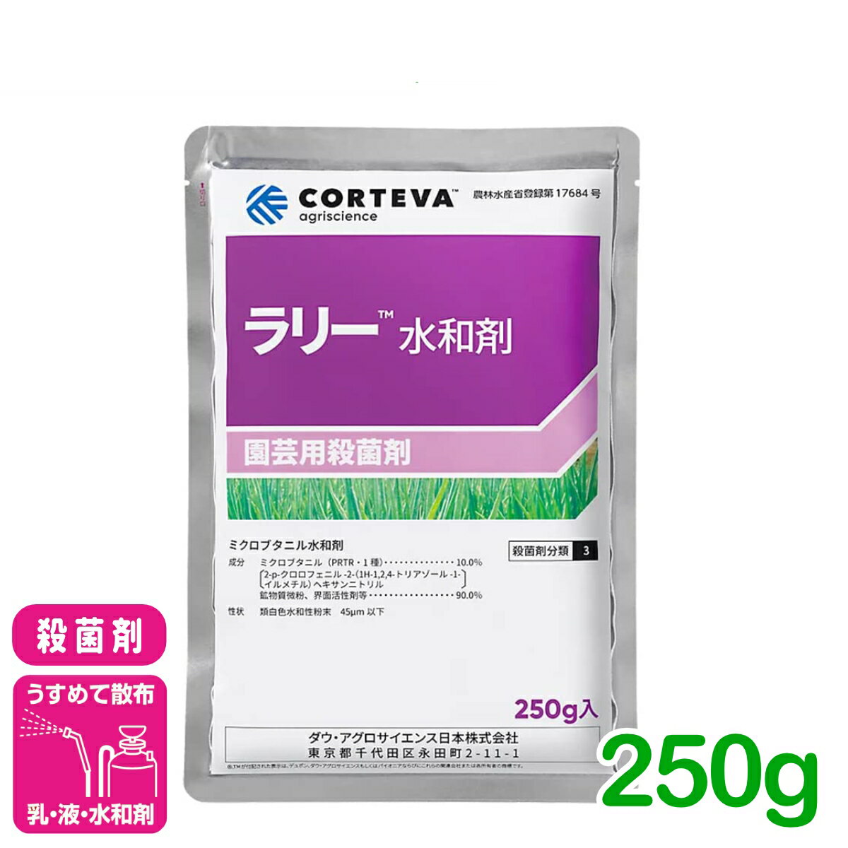 商品情報有効成分ミクロブタニル内容量250g剤型水和剤商品特長・予防効果と治療効果を兼ね備えています。 ・広範囲の病原菌に効果を発揮します。 ・浸透移行性があり、速やかに植物体内に浸透します。 ・耐雨性に優れ、効果が持続します。 対象病害虫うどんこ病、さび病、黒星病、斑点病 など対象作物野菜、果樹、花き、芝生 など検索キーワード:殺菌剤 うどんこ病 黒星病 斑点病 野菜 果樹 花き 病害 農薬 農業ラリー水和剤 250g CORTEVA 広範囲の病害に、予防と治療のダブル効果! 23 殺菌剤 ラリー水和剤 250g CORTEVA 水和剤 広範囲 予防 治療 残効性 3,830 ~