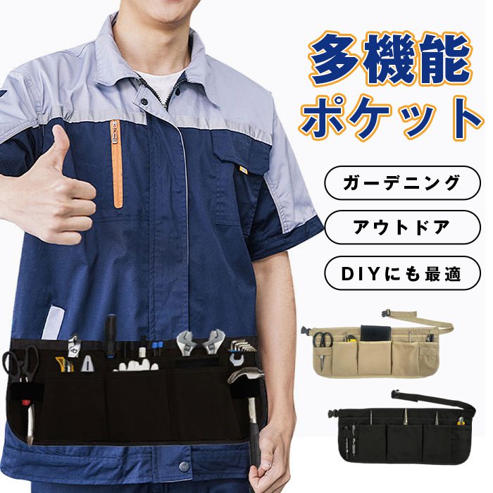 【送料無料】キャンプ アウトドア ポケット ツールエプロン キャンバス 工具 作業 園芸 ツールバッグ 美容師 ウエストポーチ ウエスト調整 3,529 ~