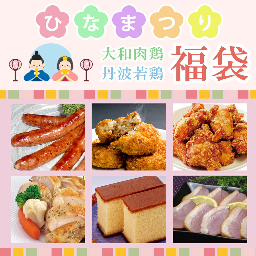 商品名 ひなまつり福袋セット 商品内容 ・ヤマトポークソーセージ1P(5本入) ・大和肉鶏コロッケ(5個入) ・丹波若どりからあげ(500g)(兵庫県産) ・丹波若どりバジル味300g入(兵庫県産) ・手作りカステラ半切サイズ1本(290g)(手作り工房 たらちね製造 ) 消費期限 商品到着後、冷蔵庫で自然解凍後3日間、長期保存の場合は冷凍庫にて約90日。 お召し上り人数の目安 約3?4人前 配送方法 ヤマト宅急便(クール便:冷凍)商品名 ひなまつり福袋セット 商品内容 ・ヤマトポークソーセージ1P(5本入) ・大和肉鶏コロッケ(5個入) ・丹波若どりからあげ(500g)(兵庫県産) ・丹波若どりバジル味300g入(兵庫県産) ・手作りカステラ半切サイズ1本(290g)(手作り工房 たらちね製造 ) 消費期限 商品到着後、冷蔵庫で自然解凍後3日間、長期保存の場合は冷凍庫にて約90日。 お召し上り人数の目安 約3?4人前 配送方法 ヤマト宅急便(クール便:冷凍) 【鶏肉】 3月限定販売 福袋セット ヤマトポークソーセージ 大和肉鶏 コロッケ 丹波若鶏 からあげ バジルソテー 手作りカステラ 4,980 ~