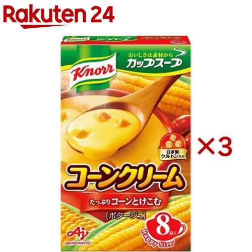 お店TOP>フード>加工食品・惣菜>スープ・シチュー>スープ(粉末)>クノール カップスープ コーンクリーム (8袋入×3セット)【クノール カップスープ コーンクリームの商品詳細】●スープに最適な品質の野菜やミルクなどをふんだんに使った、なめらかでコクのある良質なスープです。 ●素材のおいしさや栄養がとけこんだスープをバラエティ豊かに揃えているので、子供から大人まで幅広く日常的に楽しめます。 ●たっぷりコーンがとけこんだ、コクのある風味豊かなポタージュです。 ●自家製クルトン入り【召し上がり方】(1)袋の中身をカップに入れます。 (2)熱湯150mlを注ぎ、すぐに15秒ほどかき混ぜて下さい。 *調理時・飲用時の熱湯でのやけどには、充分ご注意ください。 【品名・名称】乾燥スープ(ポタージュ)【クノール カップスープ コーンクリームの原材料】スイートコーン、でん粉、砂糖、クリーミングパウダー、デキストリン、食用加工油脂、食塩、乳糖、全粉乳、オニオン、チーズ、じゃがいも、コーンバターパウダー、バターソテーオニオンパウダー、濃縮ホエイ、乳たん白、チキンエキス、酵母エキス、香辛料、うきみ(クルトン)/調味料(アミノ酸等)、膨脹剤、(一部に小麦・乳成分・大豆・鶏肉を含む)【栄養成分】1食分(18.2g)当たりエネルギー:79kcal、タンパク質:1.1g、脂質:2.7g、炭水化物:12g、食塩相当量:1.0g【アレルギー物質】小麦、乳成分、大豆、鶏肉【保存方法】常温にて保存【注意事項】・デキストリンは、スープを溶けやすくするために使用しており、さつまいもなどのでん粉から作られています。 【ブランド】クノール【発売元、製造元、輸入元又は販売元】味の素※説明文は単品の内容です。 商品に関するお電話でのお問合せは、下記までお願いいたします。 受付時間 平日9:30-17:00(土日、祝日、6月第3金曜日、夏期休暇、年末年始(12/29-1/4)を除く))調味料・加工食品・その他:0120-68-8181クノールスープ製品:0120-40-5656甘味料・アミノ酸含有食品:0120-16-0505味の素KK栄養ケア(アクアソリタ、アミノエールゼリーなど):0120-814-222リニューアルに伴い、パッケージ・内容等予告なく変更する場合がございます。 予めご了承ください。 (Knorr コーンスープ コーンポタージュ)・単品JAN:4901001135806味の素104-8315 東京都中央区京橋1-15-1※お問合せ番号は商品詳細参照広告文責:楽天グループ株式会社電話:050-5577-5043[スープ/ブランド:クノール/] クノール カップスープ コーンクリーム(8袋入×3セット)【クノール】 1,455 ~