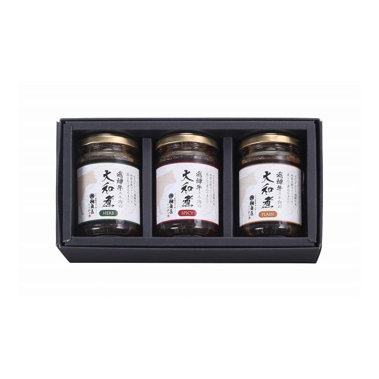 【商品詳細】創業明治十年、老舗の佃煮屋が長年温めてきたレシピを使用してつくりあげました。 飛騨牛のスネ肉がゴロっとたっぷり130g入っており、食べ応えがあります。 ハーブ味はフランスパンにクリームチーズを添えて、スパイシー味はパスタとあえても美味しくお召し上がりいただけます。 保存方法:常温商品区分:食品内容量:飛騨牛スネ肉の大和煮プレーン、飛騨牛スネ肉の大和煮ハーブ、飛騨牛スネ肉の大和煮スパイシー各130g×各1原材料(アレルギー表記含む):【飛騨牛スネ肉の大和煮プレーン】飛騨牛(岐阜県産)、ひらたけ、砂糖、醤油(小麦・大豆を含む)、唐辛子/カラメル色素、調味料(アミノ酸等)、甘味料(ステビア、甘草)、増粘剤(キサンタン)、保存料(パラオキシ安息香酸)【飛騨牛スネ肉の大和煮ハーブ】飛騨牛(岐阜県産)、ひらたけ、砂糖、醤油(小麦・大豆を含む)、唐辛子、ローズマリー/カラメル色素、調味料(アミノ酸等)、甘味料(ステビア、甘草)、増粘剤(キサンタン)、保存料(パラオキシ安息香酸)【飛騨牛スネ肉の大和煮スパイシー】飛騨牛(岐阜県産)、ひらたけ、砂糖、醤油(小麦・大豆を含む)、にんにく、唐辛子/カラメル色素、調味料(アミノ酸等)、甘味料(ステビア、甘草)、増粘剤(キサンタン)、保存料(パラオキシ安息香酸)メーカー名:株式会社鵜舞屋生産国・加工国:日本賞味期限:製造日より365日【代引きについて】こちらの商品は、代引きでの出荷は受け付けておりません。 【送料について】北海道、沖縄、離島は送料を頂きます。