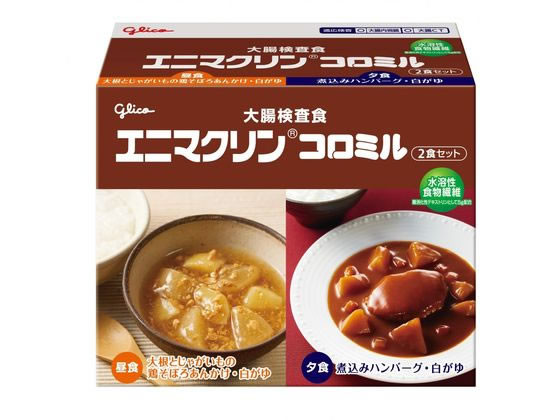 【商品説明】■大腸検査(内視鏡・CT)で正確な診断をおこなうには、腸の中をきれいにしておくことが大切です。 ■「エニマクリンCS」は大腸検査前日の昼食から食事制限する方のために開発された、消化に配慮した昼食・夕食のセットです。 ■昼食は携行性に優れ、お忙しい方でも外出先でそのまま簡単に召し上がれます。 【仕様】原材料に含まれるアレルギー物質(28品目中)ゼリーミール(R):大豆・りんごビスコ(R):乳成分・小麦煮込みハンバーグ:乳成分・小麦・大豆・鶏肉・豚肉・りんご、白がゆ:ゼラチン、原材料名【昼食】ゼリーミール(R)(18%りんご果汁入り飲料(ゼリー飲料))デキストリン(国内製造)、果糖ぶどう糖液糖、りんご濃縮果汁、ポリデキストロース、乳糖果糖オリゴ糖/ゲル化剤(増粘多糖類、寒天)、酸味料、香料、V.C、乳化剤、ナイアシン、V.E、V.B2、V.B1、V.A、V.D、(一部に大豆・りんごを含む)ビスコ(R)(ビスケット)小麦粉(国内製造)、砂糖、ショートニング、乳糖、植物油脂、全粉乳、イヌリン、発酵液、食塩、でん粉、小麦たんぱく、乳酸菌/炭酸Ca、膨脹剤、香料、乳化剤、V.B1、V.B2、V.D、(一部に乳成分・小麦を含む)【夕食】煮込みハンバーグ(ハンバーグ)ハンバーグ[鶏肉、たまねぎ、豆腐、豚脂、つなぎ(パン粉)、しょうゆ、発酵調味料、香辛料、たん白加水分解物、砂糖、食塩、大豆油/加工デンプン、リン酸塩(Na、K)、調味料(アミノ酸)](国内製造)、ソース[野菜(じゃがいも、にんじん)、難消化性デキストリン、トマトペースト、砂糖、炒めたまねぎペースト、ラード、小麦粉、ポークブイヨン、ウスターソース、食塩、濃縮赤ワイン、たん白加水分解物、酵母エキス、香味油、香辛料/増粘剤(加工デンプン)、調味料(アミノ酸等)、着色料(カラメル色素、カロチノイド色素)、香料、酸化防止剤(V.E)、香辛料抽出物]、(一部に乳成分・小麦・大豆・鶏肉・豚肉・りんごを含む)白がゆ(米飯類(かゆ))うるち米(国産)、ゼラチン、(一部にゼラチンを含む)名称・検査食(昼食・夕食セット)内容量・641.5g【備考】※メーカーの都合により、パッケージ・仕様等は予告なく変更になる場合がございます。 【検索用キーワード】 インスタント・レトルト パックご飯 X196SL大腸検査食 エニマクリンCS 2食セット【昼食携行タイプ】 【お取り寄せ】堀井薬品 エニマクリンCS 大腸検査前日の食事 1セット パックご飯 インスタント レトルト 食品 1,288 ~
