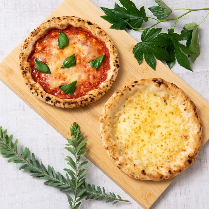 【選べる!5枚セット】 12種の中からお好きなピザが5枚選べるセットです♪ 定番のマルゲリータから変わりダネまで、12種類の中から自由にチョイス! ご自宅で、友人と、家族と、楽しみ方いろいろ♪ みんなでシェアやお家ご飯のストックにも。 5枚を冷凍状態でお届けします☆ 焼くだけの簡単調理!直径18cmで冷凍庫にもストックしやすく、ご家庭のトースターで焼きやすいサイズです! 厚さ1m mの薄いローマ風のクリスピーピザは、サクッパリッの軽い食感! この食感を出すために、国産の小麦にこだわり数種類をオリジナルブレンド。 時間をかけてじっくりこねた生地は、焼きムラのないよう1枚1枚丁寧に手で伸ばしています。 ご家庭の冷凍庫にもストックしやすく、お腹が空いた時にもサクッと食べられるサイズです。 オーブンやトースターで焼くだけの簡単調理で、お家でもお店の味が楽しめます♪ お祝いや、お家時間にも♪ お酒に合うのでおつまみにもどうぞ☆ 冷凍した状態でお届けします。 加熱してお召し上がりください。 ご自宅でいつでも好きな時にパリパリ、サクサクのピザをどうぞ♪ ※1つ1つ手作りしているため、写真とは異なる場合がございます。 商品説明 名称 冷凍ピザ 原材料名 【マルゲリータ】 約120g 小麦粉(国産)、モッツァレラチーズ、トマトソース(トマト、玉ねぎ、米麹、にんにく、塩、オリーブオイル)、バジルソース、塩、オリーブオイル、ドライイースト、(一部に小麦、乳成分を含む) 【ツナコーンマヨ】 約170g 小麦粉(国産)、モッツァレラチーズ、ゴーダチーズ、ツナ、コーン、枝豆、トマトソース(トマト、玉ねぎ、米麹、にんにく、塩、オリーブオイル)、発酵マヨネーズ(豆乳、米麹、酢、塩、オリーブオイル)、パルミジャーノレッジャーノ、塩、オリーブオイル、ドライイースト、/調味料(アミノ酸等)、(一部に小麦・乳成分を含む) 【広島レモンとバジルチキン】 約180g 小麦粉(国産)、モッツァレラチーズ、ゴーダチーズ、鶏肉(広島産)、発酵マヨネーズ(豆乳、米麹、酢、塩、オリーブオイル)、トマト、レモン(広島産)、きゅうり、パルミジャーノレッジャーノ、バジルソース、豆乳、米麹、オリーブオイル、塩、砂糖、胡椒、ドライイースト、(一部に小麦・乳成分を含む) 【てりマヨチキン】 小麦粉(国産)、モッツァレラチーズ、ゴーダチーズ、鶏肉(広島産)、トマトソース(トマト、玉ねぎ、米麹、にんにく、塩、オリーブオイル)、発酵マヨネーズ(豆乳、米麹、酢、塩、オリーブオイル)、てりやきソース(醤油、日本酒、みりん、砂糖、鰹節)パルミジャーノレッジャーノ、オリーブオイル、塩、ドライイースト、(一部に小麦・乳成分を含む) 【5種のチーズピザ】 約150g 小麦粉(国産)、モッツァレラチーズ、ゴーダチーズ、カマンベールチーズ、トマトソース(トマト、玉ねぎ、米麹、にんにく、塩、オリーブオイル)、ゴルゴンゾーラチーズ、パルミジャーノレッジャーノ、 塩、オリーブオイル、ドライイースト、(一部に小麦・乳成分を含む) 【ベーコンアスパラ】 約150g 小麦粉(国産)、モッツァレラチーズ、ゴーダチーズ、ベーコン(豚肉、玉ねぎ、米麹、塩、紅茶)、アスパラガス、ホワイトソース(牛乳、バター、小麦粉、チーズ、チキンエキス、ホワイトペッパー、ナツメグ)、パルミジャーノレッジャーノ、オリーブオイル、塩、ドライイースト、(一部に小麦・乳成分を含む) 【じゃがマヨコーン】 小麦粉(国産)、モッツァレラチーズ、ゴーダチーズ、じゃがいも、コーン、ブロッコリー、トマトソース(トマト、玉ねぎ、米麹、にんにく、塩、オリーブオイル)、発酵マヨネーズ(豆乳、米麹、酢、塩、オリーブオイル)、パルミジャーノレッジャーノ、オリーブオイル、塩、ドライイースト、(一部に小麦・乳成分を含む) 【キーマカレー】 小麦粉(国産)、モッツァレラチーズ、ゴーダチーズ、豚肉、玉ねぎ、パルミジャーノレッジャーノ、米麹、にんにく、カレーパウダー、オリーブオイル、胡椒、塩、ドライイースト、その他香辛料、(一部に小麦・乳成分を含む) 【えびマヨ】 約150g 小麦粉(国産)、モッツァレラチーズ、ゴーダチーズ、えび、ブロッコリー、トマトソース(トマト、玉ねぎ、米麹、にんにく、塩、オリーブオイル)、発酵マヨネーズ(豆乳、米麹、酢、塩、オリーブオイル)、パルミジャーノレッジャーノ、オリーブオイル、塩、ガーリックパウダー、ドライイースト、(一部に小麦・えび・乳成分を含む) 【シーフード】 約160g 小麦粉(国産)、モッツァレラチーズ、ゴーダチーズ、えび、ほたて、いか、ムール貝、アスパラガス、トマトソース(トマト、玉ねぎ、米麹、にんにく、塩、オリーブオイル)、パルミジャーノレッジャーノ、オリーブオイル、塩、ドライイースト、ブラックペッパー、(一部に小麦・えび・乳成分を含む) 【チョリソー&ハラペーニョ】 約150g 小麦粉(国産)、モッツァレラチーズ、ゴーダチーズ、チョリソー、ハラペーニョ、トマトソース(トマト、玉ねぎ、米麹、