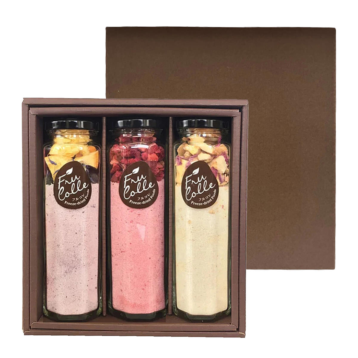 「フルコレ フルーツシュガー 八角瓶 ギフトセット」は、生のフルーツから水分だけを取り除いたフリーズドライフルーツとグラニュー糖をブレンドした、フルーツシュガーの詰め合わせです。 フルーツの美しい色とかたちをそのままに、フレッシュな香りを封じこめました。 華やかな色合いはギフトやプレゼントにおすすめです。 <ドライフルーツ>食べると口の中でフルーツの風味がよみがえります。 そのまま食べるだけでなく、ヨーグルトやアイスにトッピングしたり、炭酸水やワインに入れたりと、幅広くお楽しみいただけます。 ジューサーで攪拌するとフレッシュジュースに。 アイスクリームといっしょにミキサーにかければフルーツアイスになります。 <フルーツシュガー>お湯、紅茶、炭酸飲料、アルコールなどに入れると、手軽にフルーツフレーバーのドリンクを作れます。 ホットワインやホットブランデーなどにもおすすめ。 【名称】ドライフルーツ入りシュガー【数量・内容】ピーチシュガー、ラズベリーシュガー、ブルーベリーシュガー 各約125g(箱サイズ:縦19×横17.5×高さ5.5cm)【賞味期限】出荷日含め300日【原材料】<ピーチシュガー>砂糖(国内製造)、乾燥もも、乾燥ローズ<ラズベリーシュガー>砂糖(国内製造)、乾燥イチゴ、乾燥ラズベリー、乾燥ローズ<ブルーベリーシュガー>砂糖(国内製造)、乾燥ブルーベリー、乾燥オレンジ、乾燥コーンフラワー【アレルギー情報】掲載商品には、アレルギーの原因といわれる原材料を含んでいる場合がございます。 くわしくはお問い合わせフォームにてご連絡ください。 類似商品はこちらフルコレ フルーツシュガー 八角瓶 ギフトセッ8,300円フルコレ フルーツシュガー 八角瓶 ギフトセッ4,100円フルコレ フリーズドライ フルーツ 八角瓶 ギ5,700円フルコレ フリーズドライ フルーツ 八角瓶 ギ4,100円フルコレ フリーズドライ フルーツ 八角瓶 ギ8,300円フルコレ フリーズドライ フルーツ 八角瓶 ギ5,700円フルコレ フルーツ甘酒 粉末タイプ ギフトセッ5,700円フルコレ フリーズドライ フルーツ トライアル2,200円フルコレ フルーツ甘酒 粉末タイプ ギフトセッ8,300円新着商品はこちら2026/2/5ニセコチーズ工房 二世古 チーズ 詰め合わせ 8,100円2026/2/5ニセコチーズ工房 二世古 チーズ 詰め合わせ 7,900円2026/2/5ニセコチーズ工房 二世古 チーズ 詰め合わせ 7,100円再販商品はこちら2026/2/6冷凍 カルボナーラソースと生パスタセット 2人2,653円2026/2/5オストリッチジェルクリーム オールインワン化粧5,930円2026/2/1スタミナ1番 なめ茸 チューブ スパウトパック838円 フルコレ フルーツシュガー 八角瓶 ギフトセット 3種入 砂糖 果実シュガー 甘味料 調味料 ドライフルーツ入り 5,700 ~