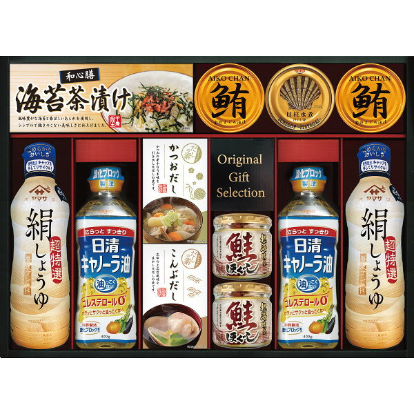 ●ヤマサ絹しょうゆバラエティギフト KI-70R2●ヤマサの絹しょうゆは、4つの麹(こうじ)が織りなす絶妙ブレンド。 「生(なま)しょうゆ」のやわらかさと重ね仕込み製法ののコクのある味、絶妙なバランスのブレンドしょうゆ、国産のかつお節の豊かなうま味を引き出したかつおだしに、国産昆布の上品な風味を生かしたこんぶだしなど、毎日の食卓へお届けする調味料バラエティギフトです。 ●ヤマサ絹しょうゆ450ml×2、かね七かつおだし(4g×5)×1、かね七こんぶだし(4g×5)×1、マルトモかつおパック(0.7g×3)×1、シーラックかつおだし(4g×3)×1、日清キャノーラ油400g×1、鮭ほぐし50g×1、海苔茶漬け(6.0g×5)×1、まぐろ油漬け70g×2●原産国 日本●化粧箱入●常温●賞味期間(メーカー設定)360日●アレルゲン 乳:小麦:さけ:大豆[●オススメ 人気 ギフト 用途 : 内祝 内祝い お返し 結婚 出産 香典 快気 結婚内祝い 出産内祝い 香典返し 志 お供え 満中陰志 法要 仏事 誕生日 引き出物 引出物 結婚引出物 結婚引き出物 ウェディングギフト ブライダルギフト 二次会 披露宴 お祝い 御祝 結婚祝い 出産祝い 初節句 七五三 快気祝い 快気内祝い 全快祝い 全快内祝い お礼 御礼 ごあいさつ ご挨拶 御挨拶 バレンタイン ホワイトデー 季節の変わり目 新生活 母の日 父の日 遅れてごめんね 敬老の日 クリスマス 新年 内祝い ご挨拶 ゴルフコンペ コンペ 記念品 賞品 景品 粗品 快気祝いのお返し 出産祝いお返し 病気見舞い 品物 お見舞いのお返し お見舞い お中元 御中元 暑中見舞い 残暑見舞い 夏ギフト 夏のご挨拶 サマーギフト お歳暮 お年賀 御歳暮 御年賀 寒中見舞い 冬ギフト 冬のご挨拶 ウィンターギフト 上司 友人 友達 親戚 家族 両親 同僚 先輩 後輩 ギフトショップ お見舞い返し 入院 見舞い ご祝儀 入学 入園 入進学 卒園 卒業 お返し プレゼント 手土産 贈りもの 贈り物 異動 退職 転職 挨拶 あいさつ 成人祝い 成人内祝い 還暦祝い 金婚式 銀婚式 四十九日 法事引き出物 引き出物 法事 年忌法要 1周忌 三回忌 七回忌 誕生祝い 結婚記念 引っ越し祝い 引っ越し内祝い 引越し祝い 引越し内祝い 引越しご挨拶 開店祝い 開店内祝い 退院祝い 昇進祝い 永年勤続 入学祝い 入学内祝い 入園祝い 入園内祝い 就職祝い 就職内祝い 転職祝い 退職祝い 卒業祝い 新築祝い 新築内祝い 改装祝い 改装内祝い 初盆 お盆 お供え物 初節句祝い 節句祝い 弔事 粗供養 お彼岸 偲び草 喪中見舞い ギフトセット セット 詰め合わせ 法人向け 企業向け 大量注文 おまとめ注文 還暦祝い 古稀祝い 喜寿祝い 傘寿祝い 米寿祝い 卒寿祝い 白寿祝い 長寿祝い] ヤマサ絹しょうゆバラエティギフト KI-70R2 7,182 ~