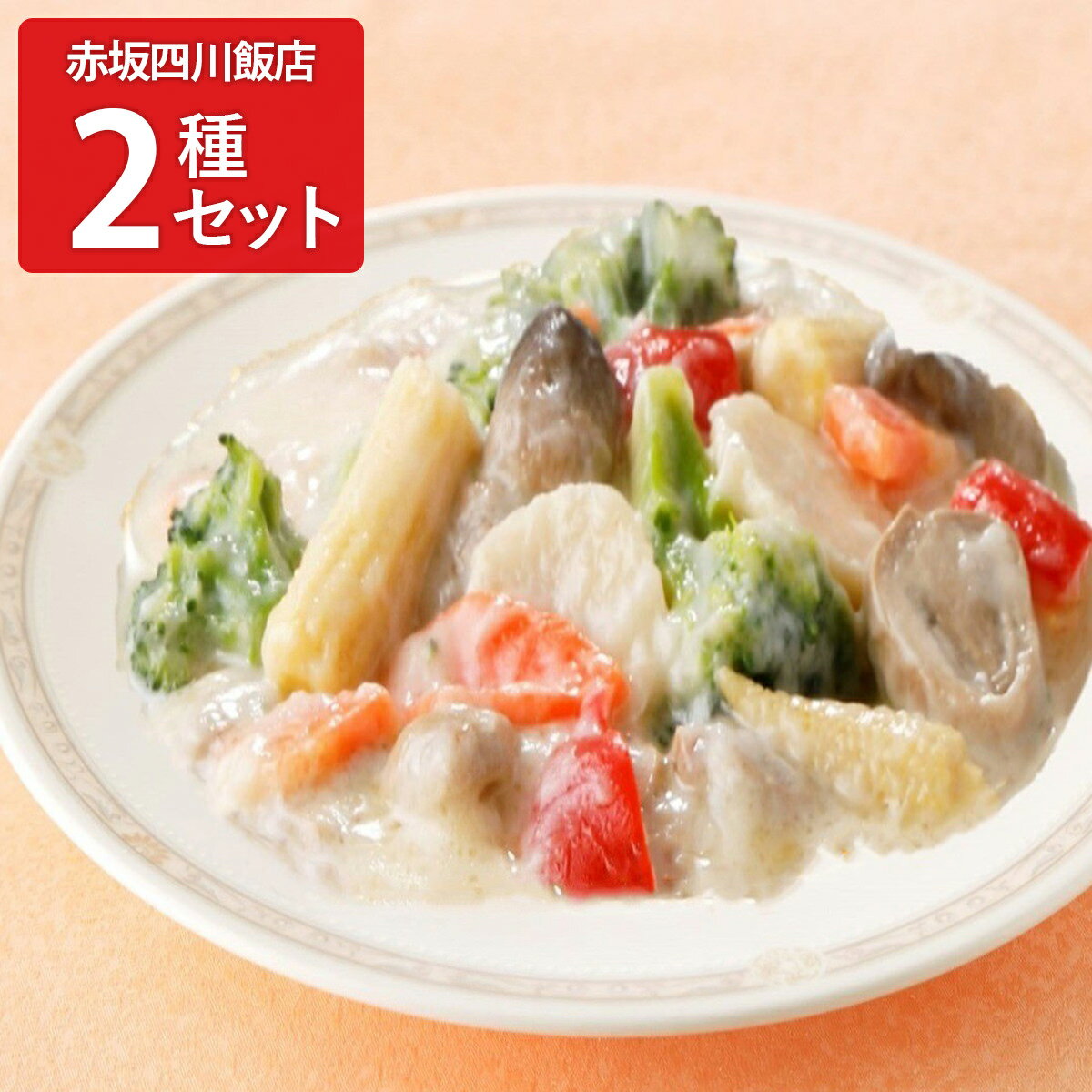 赤坂四川飯店が監修を手掛ける中華惣菜のギフトセットです。 湯せんで温めるだけで手軽に本格的な中華料理を楽しめます。 <彩り野菜のクリーム煮>ブロッコリー、ヤングコーン、マッシュルーム、赤ピーマンなど彩り野菜にバターを加え、中華風クリームソースで煮込みました。 <干し貝柱とチンゲン菜のうま煮>干し貝柱をしっかりと蒸して戻し、国産のチンゲン菜と、鶏肉、豚肉、ねぎ油等の旨味の効いたソースで合わせました。 貝柱や肉の旨味たっぷりの料理です。 {調理方法}たっぷりの沸騰したお湯に冷凍のまま袋ごと入れ、中火で約5分間湯せんする。 電子レンジ加熱不可。 【名称】彩り野菜のクリーム煮、干し貝柱とチンゲン菜のうま煮【数量・内容】彩り野菜のクリーム煮、干し貝柱とチンゲン菜のうま煮 各150g×2【賞味期限】出荷日含め90日【原材料】<彩り野菜のクリーム煮>野菜[ブロッコリー(国産)、ヤングコーン、にんじん、くわい、赤ピーマン、長ねぎ、しょうが]、無糖練乳、マッシュルーム、ふくろたけ、ねぎ油、ポーク・チキンエキス、砂糖、バター、食塩、チキンパウダー、鶏豚スープ、しょう油/増粘剤(加工デンプン)、調味料(アミノ酸等)、香料、酢酸Na、ビタミンB1、酸味料、甘味料(カンゾウ)、(一部に小麦・乳成分・大豆・豚肉・鶏肉・りんごを含む)<干し貝柱とチンゲン菜のうま煮>チンゲン菜(国産)、ポーク・チキンエキス、干し貝柱、ねぎ油、卵白、大豆油、食塩、チキンパウダー、ホタテエキス、砂糖、しょう油/増粘剤(加工デンプン)、調味料(アミノ酸等)、香料、酢酸Na、ビタミンB1、甘味料(スクラロース、カンゾウ)、(一部に小麦・卵・かに・さば・大豆・豚肉・鶏肉・りんごを含む)【アレルギー情報】掲載商品には、アレルギーの原因といわれる原材料を含んでいる場合がございます。 くわしくはお問い合わせフォームにてご連絡ください。 類似商品はこちら赤坂四川飯店 監修 八宝菜 回鍋肉 かに玉 ギ6,800円赤坂四川飯店 監修 えびといかの甘酢唐辛子炒め6,300円赤坂四川飯店監修 中華オードブル 13種 食べ12,560円赤坂四川飯店 監修 炒飯 詰め合わせ ギフトセ5,650円赤坂四川飯店監修 イセエビのチリソース 2個入11,060円赤坂四川飯店監修 大エビのチリソース 2個入 8,960円赤坂四川飯店監修 マーラーガオ 4個入10セッ9,428円赤坂四川飯店監修 ふかひれ姿煮麺 2個入 ラー14,828円赤坂四川飯店監修 あわび姿煮 300g 鮑 姿17,160円新着商品はこちら2026/2/5ニセコチーズ工房 二世古 チーズ 詰め合わせ 8,100円2026/2/5ニセコチーズ工房 二世古 チーズ 詰め合わせ 7,900円2026/2/5ニセコチーズ工房 二世古 チーズ 詰め合わせ 7,100円再販商品はこちら2026/2/6冷凍 カルボナーラソースと生パスタセット 2人2,653円2026/2/5オストリッチジェルクリーム オールインワン化粧5,930円2026/2/1スタミナ1番 なめ茸 チューブ スパウトパック838円 赤坂四川飯店 監修 クリーム煮 うま煮 ギフトセット 2種計4パック入 中華惣菜 詰め合わせ おかず 温めるだけ 中華総菜 冷凍 4,800 ~