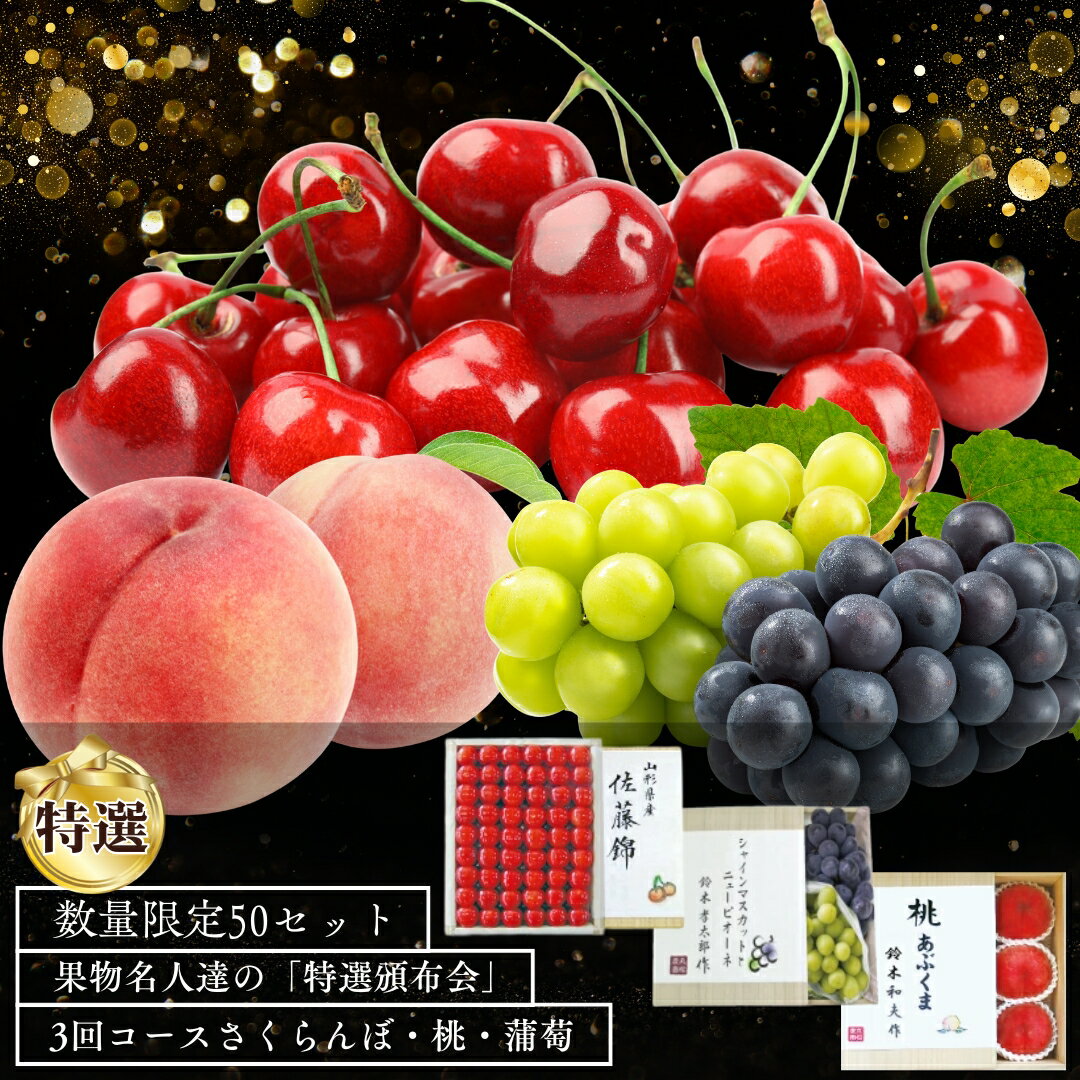 商品詳細 ひでちゃんファーム丸松農園の生産者の中でも“名人”と呼ばれる方たち。 そんな名人たちが作る極上の果物をお届けします。 丹精込めて作り上げられた果物の味はもちろん、桐箱入りの高級感は、受け取った方もきっと至福のひと時を過ごして頂けることでしょう! 産地 山形県 品種 山形県産さくらんぼ「佐藤錦」山形県産白桃「あぶくま」山形県産「シャインマスカット」「ニューピオーネ」 内容量 1回目:大津さんのさくらんぼ「佐藤錦」500g 2回目:鈴木さんの桃「あぶくま」2kg 3回目:鈴木さんのぶどう「シャインマスカットとニューピオーネ」1.4kg 送料 冷蔵便 送料無料(2箱まで1梱包) ※ただし沖縄・一部離島は受付不可 発送時期 6月下旬?7月上旬頃お届け(さくらんぼ佐藤錦500g桐箱) 9月上旬?9月中旬お届け(桃あぶくま2kg桐箱) 9月中旬?10月上旬お届け(シャインマスカットとニューピオーネ1.4kg桐箱) ※天候によって時期がずれる場合がございます。 ※お届け日指定は承れせんのでご了承ください。 ※仕入の状況により、時期が前後することがございます。 ご注意 他の商品(他品種・他規格)との同梱はできません。 ※人気商品につきお届けまでお時間をいただく場合がございます。 商品の性質上、 1日の出荷数量が限られているため、何卒、ご了承の上ご注文いただけますようお願い申し上げます。 お支払い クレジットカード、前払い決済・後払い決済。 出荷終了時期が差し迫っている商品の前払い決済はご注文をキャンセルさせていただく場合がございます。 予めご了承ください。 商品サイズ 300×200×80(mm) お買い物マラソン大特価!!3月中はエントリーしてポイント抽選!最大100%ポイントポイントバック!【予約】2026年6月?発送 送料無料 お中元 限定50箱!果物名人達の「特選頒布会」3回コース サクランボ 桃 シャインマスカット ニューピオーネ ギフト お中元 楽ギフ_のし 59,800 ~
