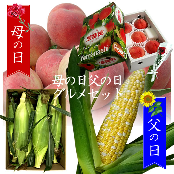母の日 温室桃 父の日 とうもろこし 甘々娘 もも トウモロコシ ペア グルメギフト 一部地域を除き送料無料