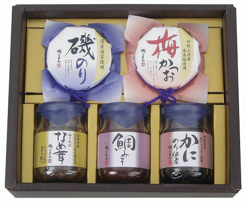 サイズ ハコ 約200×235×65mm SPEC ◆磯のり90g×1、梅かつお90g×1、柚子風味なめ茸85g×1、鯛みそ100g×1、かにのり佃煮90g×1 ※ギフト袋をご利用のお客様はご購入お願いします。 卵 乳 小麦 そば えび かに 落花生 - ● ● - - - - ご利用シーン イベント,チーム,オリジナルタオル,ノベルティ,プレゼント,贈り物,粗品,景品,お祝い,お返し,結婚式,婚礼内祝い,婚礼引出物,出産祝い,卒業祝い,卒園祝い,入学祝い,入園祝い,内祝い,引越挨拶,新築祝い,新築内祝い,お中元,お歳暮,母の日,父の日,誕生日,バースデー,快気祝い,記念品,仏事,香典返し,引出物,ご挨拶,名入れ,ネーム刺繍,プリント 【2/5日限定 全品ポイント2倍】磯じまん ご飯のお供瓶詰セットMT-25 2,160 ~