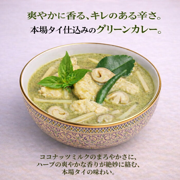 お店TOP>フード>カレー>カレーレトルト>タイカレー(レトルト)>ヤマモリ タイカレー グリーン (180g*3箱セット)【ヤマモリ タイカレー グリーンの商品詳細】●青唐辛子の辛さに野菜の甘味が絶妙に融合したタイの代表的なカレー。 ●タイ現地でしか手に入らない食材を使用し、タイの自社工場で生産、輸入しています。 ●具材にタイナスを使用しました。 ●またパームシュガーを使用する事で奥深いコクを演出し本格感を高めました。 ●日本と同じ水準の品質管理を適用したタイの現地自社工場で、本格的な味わいに仕上げました。 ●レトルトパウチ食品ですので、ご家庭で手軽に本場タイの味をお楽しみいただけます。 ●1箱で180g(1人前)。 ●保存料無添加。 【召し上がり方】1.この面の開け口からフタを開ける180度しっかりと折り返します。 このとき、中袋の蒸気口が上になっていることを確認してください。 ※中袋の封は開けない2.電子レンジで加熱加熱時間目安:500W/:1分40秒、600W:1分30秒※上記以外のW(ワット)数での調理はおやめください。 ※追加で加熱する場合は、少しずつ時間を設定し、調整してください。 3.取り出す箱を持って取り出してください。 ★お湯でも温められます。 中袋の封を切らずに熱湯の中に入れ、3〜5分間沸騰させてください。 (鍋にフタをしないでください。 )中袋の加熱後や、開封後は保存できませんので、必ず使い切ってください。 【品名・名称】カレー【ヤマモリ タイカレー グリーンの原材料】鶏肉、ココナッツミルク、野菜(なす、にんにく)、カレーペースト(レモングラス、唐辛子、にんにく、シャロット、食塩、こぶみかんの皮、ガランガル、ケール、その他)、ナンプラー、大豆油、砂糖、ココナッツパウダー(乳成分を含む)、唐辛子、レモングラス、こぶみかんの葉、食塩、ガランガル、パクチーの根、ターメリック、こぶみかんの皮、パクチーの種、バジル、シュリンプペーストパウダー(えびを含む)、ホワイトペッパー、クミン/pH調整剤、増粘剤(加工でん粉)、塩化カルシウム【栄養成分】1食分(180g)当たりエネルギー:259kcal、たんぱく質:14.4g、脂質:17.8g、炭水化物:10.4g、食塩相当量:2.4g【アレルギー物質】乳、えび、大豆、鶏肉【保存方法】直射日光を避け、常温で保存してください。 【注意事項】※こぶみかんの葉と唐辛子は刺激が強いので取り除いてからお召し上がりになることをおすすめします。 ※まれにハーブの繊維質や香辛料の種などが入っている場合がありますが、品質には問題ありません。 ・シュリンプペーストパウダーの原料となるえびとナンプラーの原料となるイワシは、他の魚介類が混ざる漁法で漁獲しています。 ・殺菌方法:気密性容器に密封し、加圧加熱殺菌【原産国】タイ【ブランド】ヤマモリ【発売元、製造元、輸入元又は販売元】ヤマモリ※説明文は単品の内容です。 リニューアルに伴い、パッケージ・内容等予告なく変更する場合がございます。 予めご了承ください。 (カレー)・単品JAN:4903101702797ヤマモリ511-8711 三重県桑名市陽だまりの丘6-1030120-049016広告文責:楽天グループ株式会社電話:050-5577-5043[インスタント食品/ブランド:ヤマモリ/] ヤマモリ タイカレー グリーン(180g*3箱セット)【ヤマモリ】[本格 レトルトカレー レトルト食品 グリーンカレー] 1,367 ~