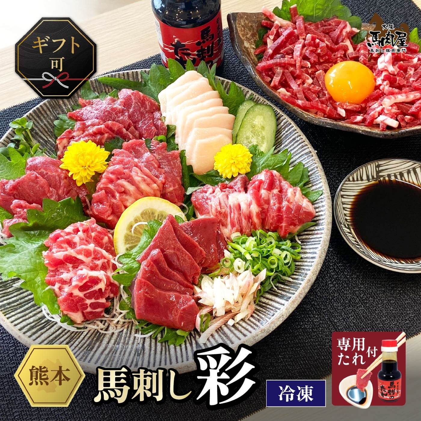 セット名 大満足 馬刺しセット・彩 名称内容量 ・馬刺し 上赤身(約50g)1パック・馬刺し ロース(約50g)1パック・馬刺し ヒレ(約50g)1パック・馬刺し たてがみ(約50g)1パック・馬刺し 上カルビ(約50g)1パック・馬刺し 特選霜降り(約50g)1パック・馬刺し ハツ(心臓)(約50g)1パック・馬刺し 桜ユッケ(赤身)(約45g)2パック・馬刺しのタレ(150ml)1本※「たれ無」をご購入の場合は付属しません。 ※「通常梱包」と「ギフトボックス」ご購入の場合は付属します。 オススメのポイント 馬刺しの定番赤身や、脂の美味しい上カルビ、カンタン調理で美味しい桜ユッケなど、一通り馬刺しを楽しみたい方にオススメです。 部位説明 【馬刺し 上赤身(50g)】 綺麗な赤い色が特徴の、あっさりとした赤身です。 厳選された上質なモモ肉のみを使用しており、大阪馬肉屋 自慢のNo.1人気商品!馬刺し初心者にオススメ! 【馬刺し ロース(50g)】 まさに赤身の王様!赤身なのに程よく脂がのっていて、肉の甘みと柔らかさが特徴。 【馬刺し ヒレ(50g)】 赤身の中で、ダントツの柔らかさが特徴。 あっさりとして、さっぱりとした口どけの最高級の一品です。 【馬刺し たてがみ コーネ(約50g)】 1頭からわずかにしか取れない、たてがみが生えている希少な部位。 コリコリとした食感で、とろける脂の甘みと旨味が特徴。 【馬刺し 上カルビ(50g)】 アバラ骨の間にある部位で、噛めば噛むほど、ジュワ?っとお口に旨味が広がります。 生で食べても、焼いてもおいしい部位です。 お肉好きの方にオススメ! 【馬刺し 特選霜降り(50g)】 ほどよくサシ(脂)が入り、赤身の旨みと脂の甘さを味わえる部位です。 柔らかい肉質で、スタッフにも人気です。 【馬刺し ハツ(50g)】 心臓の部位。 内臓特有の臭みがほとんどなく、かなりさっぱり・あっさり食べることができます。 ゴマ油やお塩をかけて、お酒のアテにオススメ! 【馬刺し 桜ユッケ 赤身(約45g)】 赤身のお肉をカットしているので、解凍するだけでお手軽に楽しめる ユッケ 。 あっさりとしたお肉をお手軽に食べたい方にピッタリ 【馬刺しのタレ(150ml)】 ◆原材料:醤油、砂糖、ブドウ糖、カラメル、発酵みりん、アミノ酸 産地 「カナダ・フランス産、国内肥育」もしくは「国産」(いずれも最終肥育地・と畜・加工は熊本県) 加工業者 【熊本県】株式会社 イージャパン(熊本県宇城市豊野町糸石12) 賞味期限 最長5ヶ月 (別途商品ラベルに記載) 配送方法 冷凍便大阪馬肉屋は、土日祝も発送対応しています! 保存方法 ?18℃以下の冷凍保存 解凍・スライス方法 ■馬刺し(冷凍ブロック) 1. 氷水を張ったボウルに真空パックのままいれ、半解凍になるまで浸けます。 (50gの部位で約30分 ※冬場はプラス5分) 2. 真空パックを開け、肉の繊維を断ち切るよう(垂直)にスライスします。 (目安:赤身2?3mm、霜降り3?4mm) 3. 馬刺し専用タレとお好みの薬味でお召し上がりください。 ■馬刺し(冷凍 ユッケ ) 1. 氷水を張ったボウルに真空パックのままいれ、全解凍になるまで浸けます。 (45gの部位で約30分 ※冬場はプラス5分) 2. 真空パックから出して盛りつけ、タレと卵黄・ごま油・薬味で和えてお召し上がりください。 <オススメの薬味>にんにく、青ネギ、コチュジャン、刻み大葉、松の実、千切りきゅうり (※)電子レンジ・冷蔵庫・室内や屋外での自然解凍は、大幅な食感や味の悪化、食品安全衛生面でのリスクも高まりますのでおやめください。 送料 送料無料※北海道は別途1,000円、沖縄は別途1,100円かかります。 また、離島・一部地域は追加の送料がかかる場合があります。 原材料名 馬肉 【関連キーワード】 馬刺し は、 贈り物 にも喜ばれます。 父の日 のプレゼントや 晩酌 のおともに、お酒好きの方への ギフト にもおすすめです。 ・ 馬刺し は、 ビール 、 ハイボール 、 ワイン 、 焼酎 、 日本酒 、 熱燗 などの お酒のつまみ に最高です。 ・楽天の キャンペーン 、 楽天スーパーSALE 、 5と0のつく日 、 お買い物マラソン 、 ポイント消化 +楽天 にもおすすめです。 ・簡単調理で、冷凍で長期保存が可能なため、常にストックしておいて、急な来客のもてなしとしておすすめです。 ・熊本の ソウルフード の 馬刺し は 送料無料 でご用意しております。 馬刺し 霜降り 赤身 上赤身 熊本 1kg 国産 レバー ふるさと納税 馬刺しふるさと納税 【検索キーワード】(商品説明ではありません) 馬刺し 通信 関西No.1 の馬刺し 専門店!絶品 馬刺し 流水解凍 簡単調理 切るだけ お手軽に 九州 熊本 の 特産品 の 馬刺し がご自宅で楽しめます。 ちょっとした おもてなし にも。 お取り寄せ グルメ は 冷凍 なので ストック にもおすすめ。 馬刺し専門店 大阪馬肉屋 の 馬刺しは 店舗の 飲食店 にも販売しており 業務用 でも大人気です。 人気の 赤身 は 霜降り 大トロ 中トロ たてがみ コーネ カルビ 生レバー タン ふたえご フタエゴ ヒレ ユッケ 希少部位 ハツ など様々な 部位 をご用意しております。 美味しい お酒 の おつまみ に。 焼酎 日本酒 ウイスキー ビ