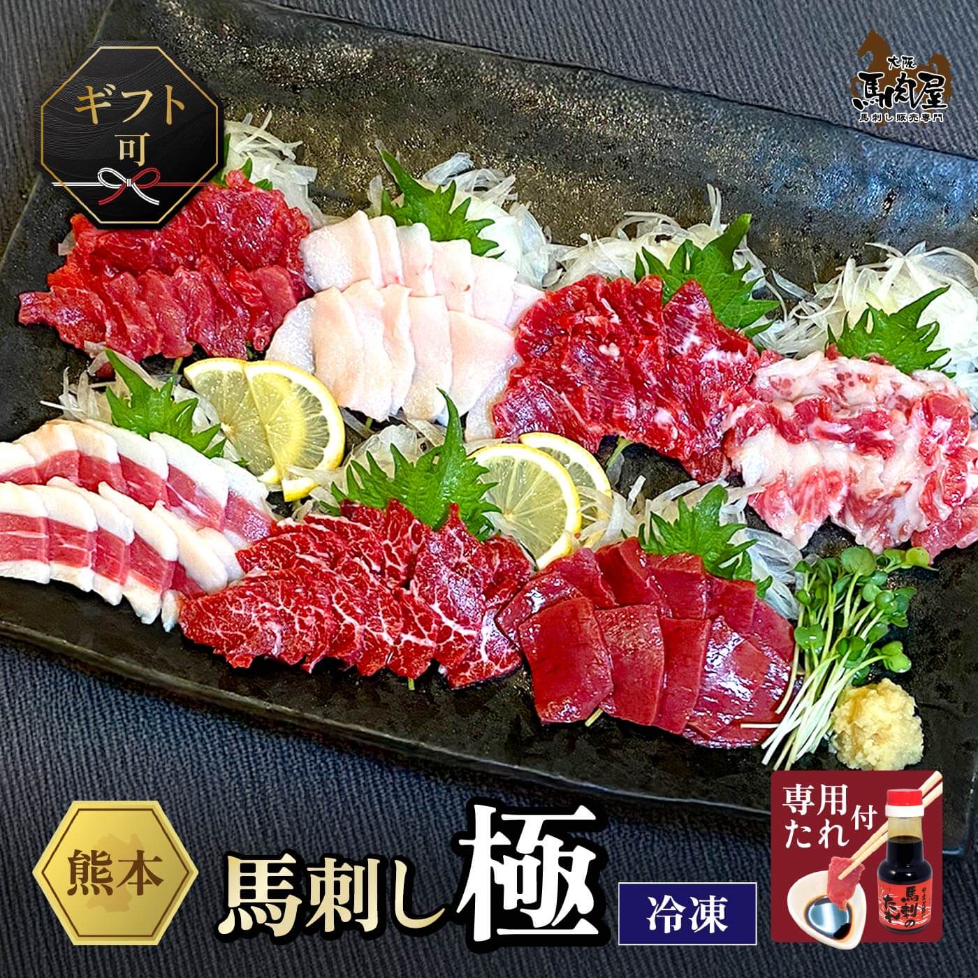 セット名 大阪馬肉屋セレクト・極 名称内容量 ・馬刺し 上赤身(モモ)(約50g)1パック・馬刺し ロース(約50g)1パック・馬刺し たてがみ(約50g)1パック・馬刺し 上カルビ(約50g)1パック・馬刺し フタエゴ(約50g)1パック・馬刺し ハラミ(約50g)1パック・馬刺し ハツ(心臓)(約50g)1パック・馬刺しのタレ(150ml)1本※「たれ無」をご購入の場合は付属しません。 ※「通常梱包」と「ギフトボックス」ご購入の場合は付属します。 オススメのポイント 大阪馬肉屋がセレクトする、馬刺し好きな人のためのセット。 定番の赤身やたてがみ、旨味を堪能できる部位や希少部位もセットになった、贅沢なセットです。 部位説明 【馬刺し 上赤身(モモ)(50g)】 綺麗な赤い色が特徴の、あっさりとした赤身です。 厳選された上質なモモ肉のみを使用しており、大阪馬肉屋 自慢のNo.1人気商品!馬刺し初心者にオススメ! 【馬刺し 特上赤身(ロース)(50g)】 まさに赤身の王様!赤身なのに程よく脂がのっていて、肉の甘みと柔らかさが特徴。 【馬刺し たてがみ コーネ(約50g)】 1頭からわずかにしか取れない、たてがみが生えている希少な部位。 コリコリとした食感で、とろける脂の甘みと旨味が特徴。 【馬刺し 上カルビ(50g)】 アバラ骨の間にある部位で、噛めば噛むほど、ジュワ?っとお口に旨味が広がります。 生で食べても、焼いてもおいしい部位です。 お肉好きの方にオススメ! 【馬刺し フタエゴ(上)(約50g)】 バラの部分でも最もわずかにしか取れない部位。 3層肉で見た目にも華やかでコリコリとした歯ごたえが人気の部位 【馬刺し ハラミ(50g)】 横隔膜の部位。 肉質は柔らかく、口の中に入れると濃厚な旨味を強く感じて頂けます。 【馬刺し ハツ(約50g)】 心臓の部位。 内臓特有の臭みがほとんどなく、かなりさっぱり・あっさり食べることができます。 ゴマ油やお塩をかけて、お酒のアテにオススメ! 【馬刺しのタレ(150ml)】 ◆原材料:醤油、砂糖、ブドウ糖、カラメル、発酵みりん、アミノ酸 産地 「カナダ・フランス産、国内肥育」もしくは「国産」(いずれも最終肥育地・と畜・加工は熊本県) 加工業者 【熊本県】株式会社 イージャパン(熊本県宇城市豊野町糸石12) 賞味期限 最長5ヶ月 (別途商品ラベルに記載) 配送方法 冷凍便大阪馬肉屋は、土日祝も発送対応しています! 保存方法 ?18℃以下の冷凍保存 解凍・スライス方法 ■馬刺し(冷凍ブロック) 1. 氷水を張ったボウルに真空パックのままいれ、半解凍になるまで浸けます。 (50gの部位で約30分 ※冬場はプラス5分) 2. 真空パックを開け、肉の繊維を断ち切るよう(垂直)にスライスします。 (目安:赤身2?3mm、霜降り3?4mm) 3. 馬刺し専用タレとお好みの薬味でお召し上がりください。 (※)電子レンジ・冷蔵庫・室内や屋外での自然解凍は、大幅な食感や味の悪化、食品安全衛生面でのリスクも高まりますのでおやめください。 送料 送料無料※北海道は別途1,000円、沖縄は別途1,100円かかります。 また、離島・一部地域は追加の送料がかかる場合があります。 原材料名 馬肉 【関連キーワード】 馬刺し は、 贈り物 にも喜ばれます。 父の日 のプレゼントや 晩酌 のおともに、お酒好きの方への ギフト にもおすすめです。 ・ 馬刺し は、 ビール 、 ハイボール 、 ワイン 、 焼酎 、 日本酒 、 熱燗 などの お酒のつまみ に最高です。 ・楽天の キャンペーン 、 楽天スーパーSALE 、 5と0のつく日 、 お買い物マラソン 、 ポイント消化 +楽天 にもおすすめです。 ・簡単調理で、冷凍で長期保存が可能なため、常にストックしておいて、急な来客のもてなしとしておすすめです。 ・熊本の ソウルフード の 馬刺し は 送料無料 でご用意しております。 馬刺し 霜降り 赤身 上赤身 熊本 1kg 国産 レバー ふるさと納税 馬刺しふるさと納税 【検索キーワード】(商品説明ではありません) 馬刺し 通信 関西No.1 の馬刺し 専門店!絶品 馬刺し 流水解凍 簡単調理 切るだけ お手軽に 九州 熊本 の 特産品 の 馬刺し がご自宅で楽しめます。 ちょっとした おもてなし にも。 お取り寄せ グルメ は 冷凍 なので ストック にもおすすめ。 馬刺し専門店 大阪馬肉屋 の 馬刺しは 店舗の 飲食店 にも販売しており 業務用 でも大人気です。 人気の 赤身 は 霜降り 大トロ 中トロ たてがみ コーネ カルビ 生レバー タン ふたえご フタエゴ ヒレ ユッケ 希少部位 ハツ など様々な 部位 をご用意しております。 美味しい お酒 の おつまみ に。 焼酎 日本酒 ウイスキー ビール などの お酒 とも相性抜群!夜ご飯 の一品にも。 真空パック しておりますので食べたいときに 食べたい分だけ 食べられます。 テレビ で人気の 牛とろフレーク ならぬ 馬とろフレーク も 人気 の 商品 です。 【こんな用途に】 父の日 父の日ギフト 父の日プレゼント 母の日 母の日ギフト 母の日プレゼント 御中元 お中元 残暑御見舞 残暑見舞い 敬老の日 ハロウィン 寒中お見舞 クリスマス クリスマスプレゼント お歳暮 年越し 年末 帰省土産 お返し お歳暮ギフト 御正月 お正月 新年 