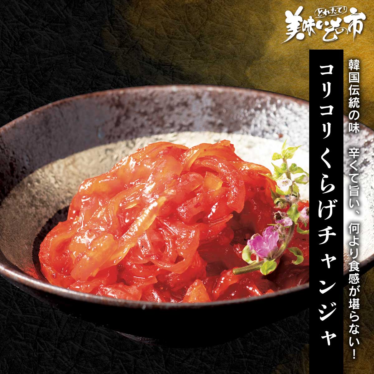 ぷるぷるコリコリ食感が楽しい 「くらげ」 の絶品チャンジャ!!昆布と魚介の2種類の海鮮エキスとかつお節粉末のチャンジャダレが辛旨です!!ご飯のお供、 お酒のあて、 納豆 ・豆腐・サラダのト ッピング!辛旨とその食感は堪りません!!韓国伝統の味 ぷるぷるコリコリ食感が楽しい 「くらげ」 の絶品チャンジャ!!昆布と魚介の2種類の海鮮エキスとかつお節粉末のチャンジャダレが辛旨です!!ご飯のお供、 お酒のあて、 納豆 ・豆腐・サラダのト ッピング!辛旨とその食感は堪りません!! コリコリくらげチャンジャ 内容量 コリコリくらげチャンジャ 70g×4袋食塩相当量:2.8g/100g 原産地 クラゲ(メキシコ) 加工地 函館 賞味期限 冷凍:2026年4月1日、解凍後冷蔵14日 ※通常より賞味期限が短い商品です! アレルギー表示 原材料の一部に、大豆・小麦・乳成分・えび・ごま・ゼラチンを含む 【賞味期限間近アウトレットセール】コリコリくらげチャンジャ「ねこぶだし」でおなじみ「とれたて!美味いもの市」から登場 2,970 ~