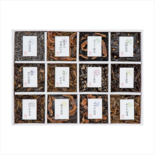 ●紙袋のご用意はできません。 ●ギフト商品のため納品書は同梱されません。 ●メーカー都合により、デザイン・内容等が変更になる場合がございます。 ●ご注文者様宛以外へ発送の場合、お届け先様の転居・住所不明・長期不在などが発生した際は商品をご依頼主様へ転送させていただきます。 明治35年より伝えられてきた「直火釜炊き製法」は、調味料を佃煮に全て染み込ますことにより、ふっくらと炊き上げ、しっかりとした味になっております。 昔ながらの佃煮をご提供いたします。 ■ごま昆布45g・椎茸昆布45g・汐吹昆布20g・しその実わかめ45g・かつお昆布20g・山椒昆布45g・ひじき椎茸45g・わかめ佃煮45g・椎茸入甘煮わかめ45g・鰹入わかめ昆布50g・わかめ木耳50g・木耳昆布50g×各1■箱サイズ:24×33×2.8cm【用途】引出物 結婚内祝 婚家 結婚祝 出産内祝 出産祝 仏事 快気 新築 記念 贈答 お返し お祝い 御祝 香典返し 法事 法要 引越し 新築祝い お中元 お歳暮 敬老の日 還暦 賀寿 母の日 父の日 自分へのご褒美 自分へのお取り寄せグルメなど 快気祝い 成人お祝い 金婚式 銀婚式 入籍記念日 白寿 卒寿 米寿 傘寿 喜寿 古希 還暦祝い 賀寿 長寿祝い 緑寿 入園祝い 入学祝い 卒業祝い 就職祝い 新築祝い 開店祝い お土産 お誕生日プレゼント お年賀 お中元ギフト 会社 企業 残暑見舞い●紙袋のご用意はできません。 ●ギフト商品のため納品書は同梱されません。 ●メーカー都合により、デザイン・内容等が変更になる場合がございます。 ●ご注文者様宛以外へ発送の場合 お届け先様の転居・住所不明・長期不在などが発生した際は 商品をご依頼主様へ転送させていただきます。