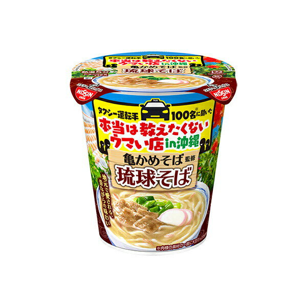 ※期間限定品のため、メーカー在庫によってはお届けできない場合があります。 予めご了承ください。 ※配送センター出荷のため代金引換はご利用いただけません。 ※お取り寄せ商品です。 在庫状況により発送まで1週間程度かかる場合がございます。 ※商品は当社指定業者にて発送いたします。 ※複数の商品をご注文いただいた際、発送元が異なる場合は、別送となります。 ※配送センター出荷のため納品書などは同梱されておりません。 ●商品の改訂により商品のデザイン、パッケージに記載されている内容と異なる場合があります。 【品名・名称】即席カップめん【商品の特徴】その土地を知り尽くしたタクシー運転手さんに聞いた、本当は教えたくない地元のウマい店をカップ麺化。 【内容量】88g×12個入り (1ケース)【原材料】めん(小麦粉(国内製造)、食塩、大豆食物繊維、チキンエキス、植物油脂)、スープ(豚脂、ポーク調味料、でん粉、かつおぶし調味料、食塩、糖類、魚粉、粉末しょうゆ、酵母エキス、こんぶ調味料、しいたけ調味料)、かやく(豚肉加工品、魚肉練り製品、紅しょうが、ねぎ)/加工でん粉、調味料(アミノ酸等)、かんすい、乳化剤、炭酸Ca、香料、増粘多糖類、グリセリン、カラメル色素、酸化防止剤(ビタミンE)、酸味料、クチナシ色素、チャ抽出物、ビタミンB2、ビタミンB1、ベニコウジ色素、野菜色素、ベニバナ色素、香辛料抽出物、(一部に小麦・卵・乳成分・ごま・さば・大豆・鶏肉・豚肉を含む)【栄養成分表示】熱量329kcal(めん・かやく281kcal、スープ48kcal)、たんぱく質9.3g、脂質5.3g、炭水化物61.1g、食塩相当量5.1g(めん・かやく2.2g、スープ2.9g)、ビタミンB1 0.35mg、ビタミンB2 0.37mg、カルシウム163mg【賞味期限】別途パッケージに記載【保存方法】においが強いもののそばや直射日光を避け、常温で保存してください【発売元、製造元、販売元又は輸入元】日清食品株式会社大阪市淀川区西中島4-1-1【広告文責】株式会社富士薬品0120-51-2289 日清 タクシー運転手100名に聞いた本当は教えたくないウマい店 亀かめそば監修琉球そば 88g×12個入り (1ケース) 3,564 ~