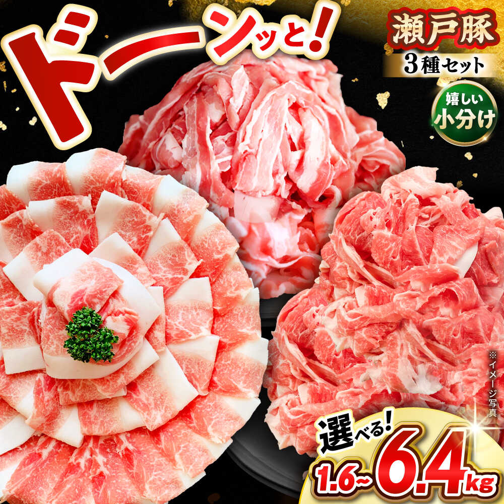 豚肉 小分け 冷凍 便利 お肉 肉 炒め物 鍋 しゃぶしゃぶ カレー 豚汁 にく 便利 セット ポーク 切り落とし 瀬戸豚 国産 愛知県産■ 瀬戸の恵み、瀬戸豚3種セット! 瀬戸の恵み、瀬戸豚ロースしゃぶ、バラスライス、カタバラ切落しなどなど。 しゃぶしゃぶや肉巻き、豚汁など、さまざまな料理を手軽にお楽しみいただける瀬戸豚3種セットです。 冷凍でのお届けなので、必要なときに解凍して新鮮さを失わずに楽しむことができます。 また、賞味期限は1か月と長く、保存にも便利です。 瀬戸豚は、愛知県瀬戸市の自然豊かな環境で育まれた、赤身が柔らかく脂身がジューシーな豚肉です。 生産者自らが確認した安全なエサで、一頭一頭愛情込めて飼育されています。 この安全性と品質は、食卓に安心をもたらします。 ■注意事項/その他 ・本返礼品は冷凍でのお届けとなります。 お使いになるときは前夜から冷蔵庫内で解凍いただくと、旨味成分の流出が抑えられ、より美味しくお召し上がりいただけます。 ・賞味期限は1か月ございますが、お届け直後は特に美味しく味わっていただけますので、早めの調理をおすすめいたします。 ・生育数に限りがあるためお届けまでにお時間をいただく場合があります。 予めご了承下さい。 ・夏季のみ保冷剤を同梱しております。 ▼ 牛豚セットはこちら ▼ 【選べる容量】瀬戸山麓牛豚切落しセット ▼ 牛肉はこちら ▼ 希少部位 瀬戸山麓牛ヒレステーキ用300g(100g×3枚) 瀬戸山麓牛カタバラ切落し1kg(250g×4P) 瀬戸山麓和牛カタロース すきやき・しゃぶしゃぶ用 計1kg 【訳あり】瀬戸山麓牛焼肉用切落し500g(250g×2P) その他の返礼品はこちら! 商品説明 名称【選べる容量】 瀬戸豚 豚3種セット 内容量※以下の容量からお選びいただけます ■瀬戸豚 豚肉3種セット ・計1.6kg (ロースしゃぶ500g バラスライス500g カタバラ切落し600g) ・計3.2kg (ロースしゃぶ1kg バラスライス1kg カタバラ切落し1.2kg) ・計4.8kg (ロースしゃぶ1.5kg バラスライス1.5kg カタバラ切落し1.8kg) ・計6.4kg (ロースしゃぶ2kg バラスライス2kg カタバラ切落し2.4kg) 原産地愛知県瀬戸市 賞味期限製造日から冷凍で30日 アレルギー表示含んでいる品目:豚肉※※アレルギー情報につきましては、お礼品到着後、お礼品の包装容器の表示ラベルをご確認ください。 ※提供元からの情報に基づき、作成・掲載をしています。 ※提供元の規格変更などに伴い、お礼品は、本サイト掲載の情報から予告なく変更となる場合がございます。 配送方法冷凍 配送期日ご決済確認後、翌月末日までに発送予定 提供事業者合資会社関屋精肉店 豚肉 小分け 冷凍 便利 お肉 肉 炒め物 鍋 しゃぶしゃぶ カレー 豚汁 にく 便利 セット ポーク 切り落とし 瀬戸豚 国産 愛知県産 【ふるさと納税】【キャンペーン対象】【選べる容量】瀬戸豚 豚肉 3種セット / 豚肉 小分け 冷凍 便利 / 瀬戸市 / 関屋精肉店[BBBQ009] 11,000 ~