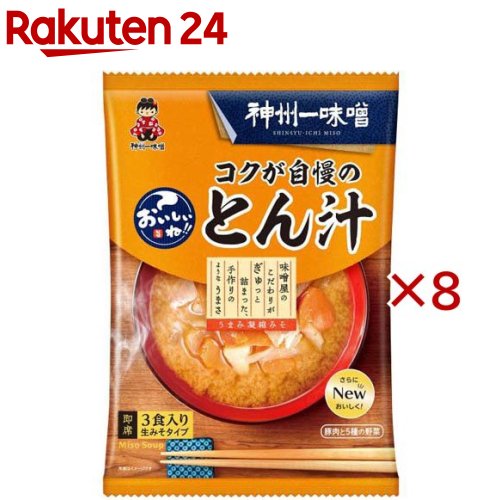 お店TOP>フード>加工食品・惣菜>レトルト食品>とん汁(レトルト)>おいしいね!! コクが自慢のとん汁 (3食入×8セット)【おいしいね!! コクが自慢のとん汁の商品詳細】●素材の食感やおいしさを活かす、レトルトタイプの具です。 ●豚肉と5種類の野菜を具にしました(豚肉、じゃがいも、大根、人参、ごぼう、玉ねぎ)。 ●味噌屋のこだわりがぎゅっと詰まった、手作りのようなおいしさ。 うまさへのこだわり:味噌屋のひと工夫 うまみ凝縮みそ使用。 【品名・名称】即席みそ汁(生みそタイプ)【おいしいね!! コクが自慢のとん汁の原材料】調味みそ:米みそ、食塩、砂糖、ラード、ポークエキス、野菜エキス、たんぱく加水分解物、酵母エキス/酒精、調味料(アミノ酸等)、香料、(一部に小麦・大豆・豚肉を含む)具:じゃがいも(中国)、大根、豚肉、人参、ごぼう、玉ねぎ、大豆油、食塩、ばれいしょでんぷん、(一部に大豆・豚肉を含む)【栄養成分】1食(59g)あたりエネルギー:74kcal、たんぱく質:2.9g、脂質:4.6g、炭水化物:5.2g、食塩相当量:2.5g【アレルギー物質】小麦、大豆、豚肉【保存方法】高温の場所を避け、保存してください【ブランド】おいしいね【発売元、製造元、輸入元又は販売元】神州一味噌※説明文は単品の内容です。 リニューアルに伴い、パッケージ・内容等予告なく変更する場合がございます。 予めご了承ください。 ・単品JAN:4902703085376神州一味噌112-0012 東京都文京区大塚3-5-10 住友成泉小石川ビルディング本館2階0120-550553広告文責:楽天グループ株式会社電話:050-5577-5043[スープ/ブランド:おいしいね/] おいしいね!! コクが自慢のとん汁(3食入×8セット)【おいしいね】 2,204 ~