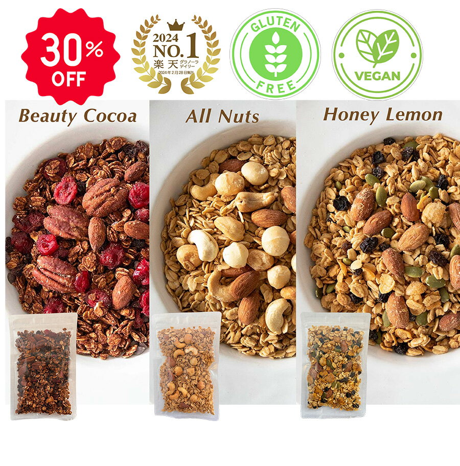 \30%OFFクーポン発行中/《お試し》グラノーラ 80g×3 無添加 砂糖不使用 グルテンフリー 低GI 有機素材 ロカボ 朝食 置き換え アソート ナッツ ココア ハニーレモン 美容 腸活 健康 プチギフト お年賀 アサイーボウル 2,600 ~