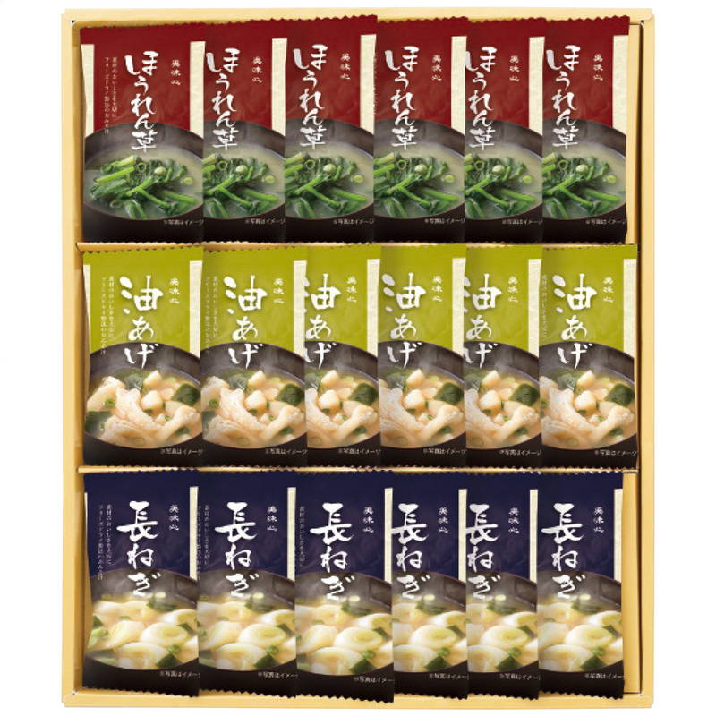■商品説明 お湯を注ぐだけで、本格的な味わい。信州の米味噌、鰹と昆布の旨みたっぷりの合わせだしを使用したフリーズドライ味噌汁は、常温で長期保存も可能です。 ■商品詳細 製造生産地:日本製 賞味期間:製造日より常温約450日 アレルゲン:大豆 重さ:190g 美味心 フリーズドライ味噌汁ギフト MSA-AS 2,110 ~