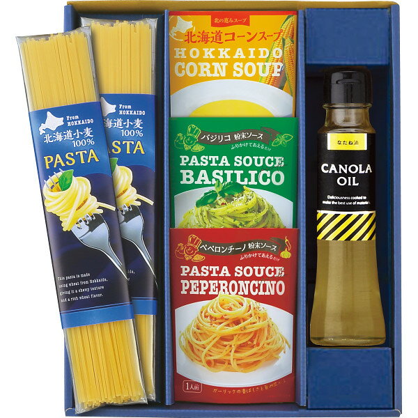 商品説明北海道小麦のパスタ、簡単便利なシーズニング、北海道産スイートコーンのスープなど北海道の恵みを味わえるパスタセットです。 ●北海道小麦のパスタ80g×2、パスタシーズニング(ペペロンチーノ・バジリコ)各3g×各1、キャノーラ油90g×1、北海道コーンスープ16.5g×1ITEM INFORMATIONJAN4535301022360