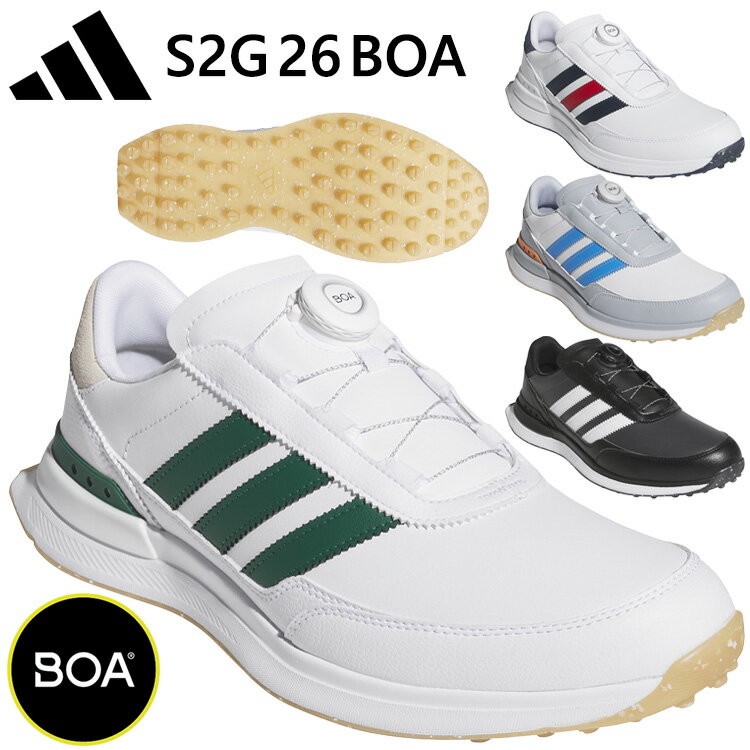 Stan Smith BOA Spikeless Golf Shoes オリジナルスゴルフ待望のBOAフィットシステム搭載シューズ。 オリジナルズのシューズとしては初のBOA搭載モデルとなっていながら、アイコニックなスタンスミスのシルエットやデザインに新たなユニークさをあしらったものに仕上がっているゴルフシューズ。 通常のスタンスミスにはない、防水の合成皮革アッパー・芝生でしっかりとグリップ力を生むスパイクレスラバーアウトソール。 よりクッション性を高めたミッドソールの内部構造はシューレースモデルと同様にゴルフのために作られた仕様に。 BOAフィットシステムで中足部のアッパーを全面的に引っ張ることで、おしゃれで汎用性の高いデザインを干渉せずにゴルフに必要な安定性をもたらします。 特徴的なのが天然皮革素材を使ったモールドシュータン。 ゴルフハンチングを被ったスタンスミスのロゴを前面的に表現しながらタンから手を離せば自動的にBOAのダイヤルを隠してくれる特殊な構造により、クリーンなかつユニークなデザインを実現した一足。 レギュラーフィット細かく調節可能なダイヤルベースのBOAフィットシステム防水合成素材アッパーBOOSTとLIGHTSTRIKEラバーアウトソール重量:430 g(27 cm片足重量)テキスタイルライニング自動的にBOAダイヤルを隠してくれるレザーのシュータンメーカー希望小売価格はメーカーサイトに基づいて掲載しています 【先着順!!お買い物マラソンMAX3,500円OFFクーポン発行中!!有効期間:2/6(金)00:00〜2/10日(火)01:59迄】アディダスゴルフ スタンスミス BOA メンズ スパイクレス ゴルフシューズ NQX25 2025モデル 日本正規品 19,800 ~