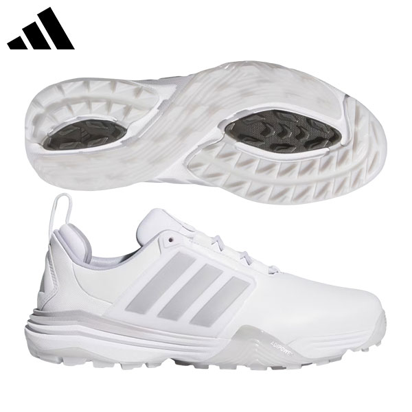 |標準幅 |スパイクレス |紐タイプこの商品の特徴取り寄せ商品につきましては、通常3-6営業日での出荷が目安となります。 仕入れ先の在庫状況により変動致しますので確認後メールにて納期回答させて頂きます。 Traxionテクノロジーがグリーンで確かなグリップ力を発揮するゴルフシューズ。 アディパワー 26 ワイド スパイクレス ゴルフでプレーをパワーアップしよう。 このシューズは正確で安定した土台として、ラウンドを重ねるごとに上達をサポートする。 レザーと合成素材のアッパーが優れた耐久性と柔軟性をもたらし、テキスタイルライニングが最初のティーショットから最後のパットまで安定した履き心地を保つ。 Traxionテクノロジーがスイングのたびに確かなグリップ力とバランスを提供する。 軽量クッショニングを追加するRepetitorミッドソールを搭載し、コースを回っているあいだ中ずっと滑らかで高反発のストライドを実現。 大胆なスリーストライプスと機能的なディテールで仕上げられたこのアディダスシューズは、シャープなエッジと優れた機能性を併せ持ち、パフォーマンスを損なうことなく快適かつスタイリッシュにゴルフを楽しめる。 ・ワイドフィット・シューレース・レザーと合成素材のアッパー・テキスタイルソックライナー・ラバーアウトソール・TRAXIONテクノロジー・REPETITORミッドソールスペック素材アッパー:天然皮革,合成皮革ミッドソール:EVA(REPETITOR)アウトソール:合成底幅パフォーマンスワイドラスト(EEE相当)カラークラウドホワイト×シルバーメタリック×シルバー(JP8401)SHOES GUIDE最適なシューズ選びの参考にメーカー特徴 アディダス土踏まず・甲の部分はしっかりしたホールド感がありますが、足先の横幅に少しゆとりがあるモデルもあります。 普段2Eなど平均的な足幅の方はフィットしますが足幅が広い方は+0.5cm大きめをおすすめします。 発売日:2026年ADIPOWER 26 WIDE SPIKELESS GOLF Cloud White×Silver Metallic×Halo Silver アディダス アディパワー 26 ワイド ゴルフ OPJ09 スパイクレス ゴルフシューズ クラウドホワイト×シルバーメタリック×シルバー(JP8401) 17,600 ~