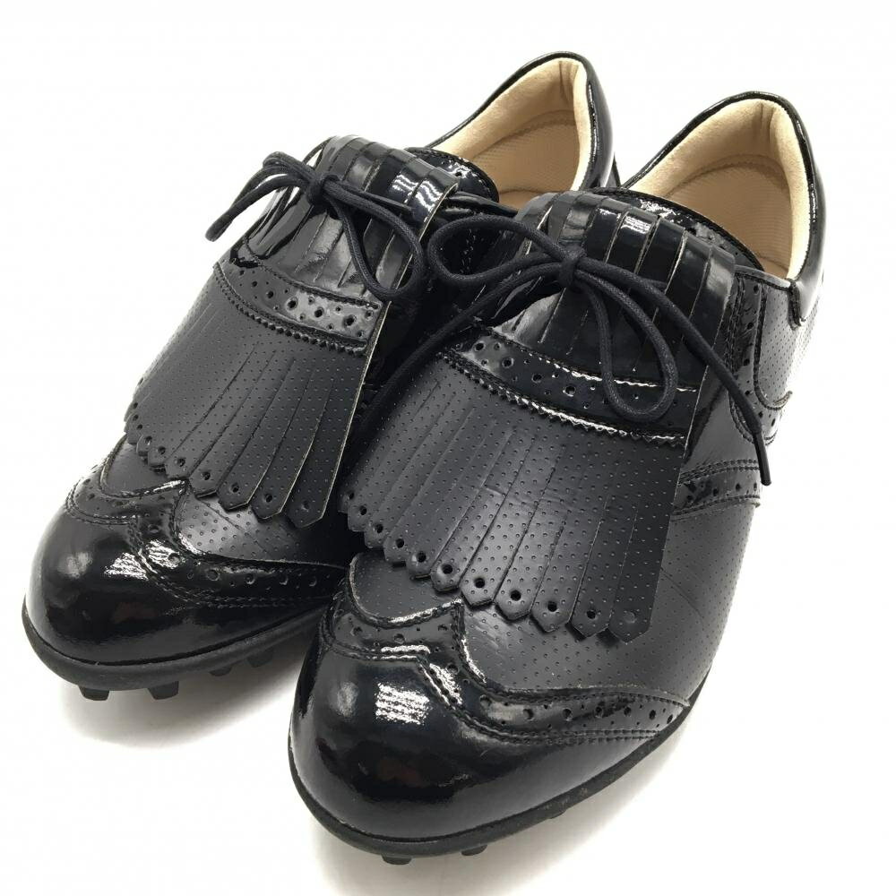【超美品】アジェイド ゴルフシューズ 黒 一部エナメル ウイングチップ キルト取外し可 スパイクレス レディース 22.5 ゴルフウェア aJADE 6,956 ~
