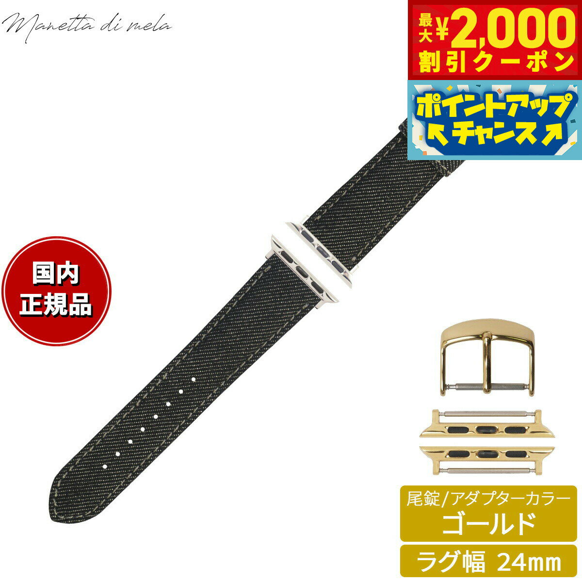 【当店限定Wイベント!2000円OFFクーポン&抽選で最大10000ptバック】マネッタ ディ メーラ Manetta di mela アップルウォッチ Apple Watch 替えバンド ベルト メンズ レディース 岡山デニム 24mm ブラックデニム グレーステッチ/ゴールド EDA-AGG24 7,150 ~
