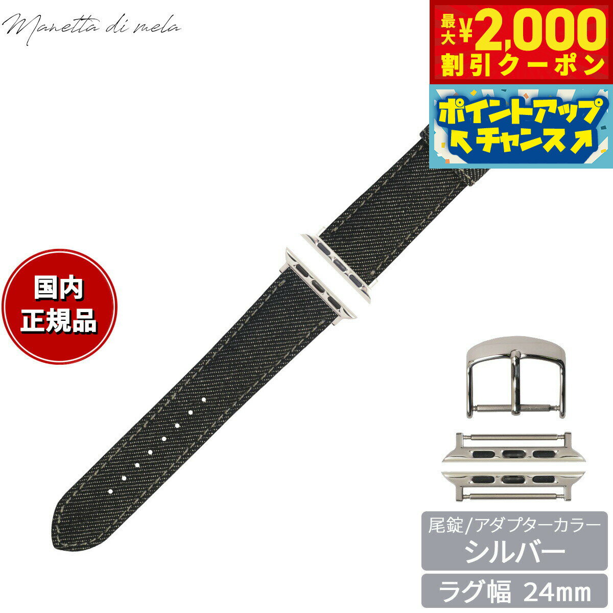 【当店限定Wイベント!2000円OFFクーポン&抽選で最大10000ptバック】マネッタ ディ メーラ Manetta di mela アップルウォッチ Apple Watch 替えバンド ベルト メンズ レディース 岡山デニム 24mm ブラックデニム グレーステッチ/シルバー EDA-AGS24 7,150 ~