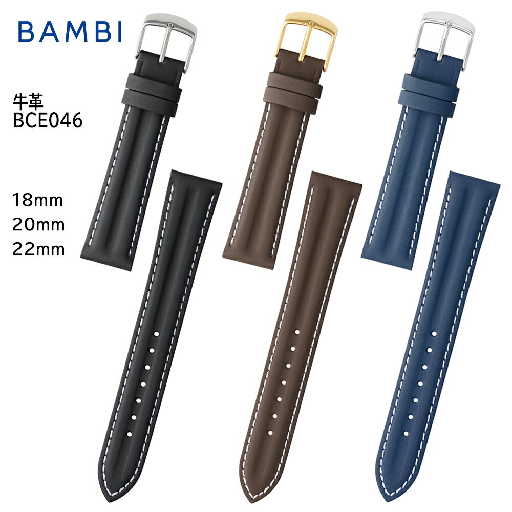 【4日20時からポイント10倍】 腕時計 ベルト 時計 バンド BAMBI バンビ 【追加穴あけ加工不可】 18mm 20mm 22mm 牛革 革 交換 替えベルト BCE046 3,960 ~