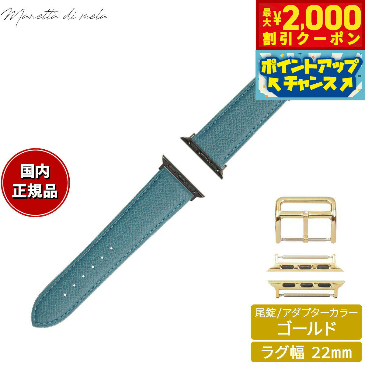 【最大2000円OFFクーポン!&店内ポイント最大52倍!本日限定!】マネッタ ディ メーラ Manetta di mela アップルウォッチ Apple Watch 替えバンド ベルト メンズ レディース ワープロラックス カーフレザー 22mm アクアブルー/ゴールド EWB-BL-G22 10,450 ~