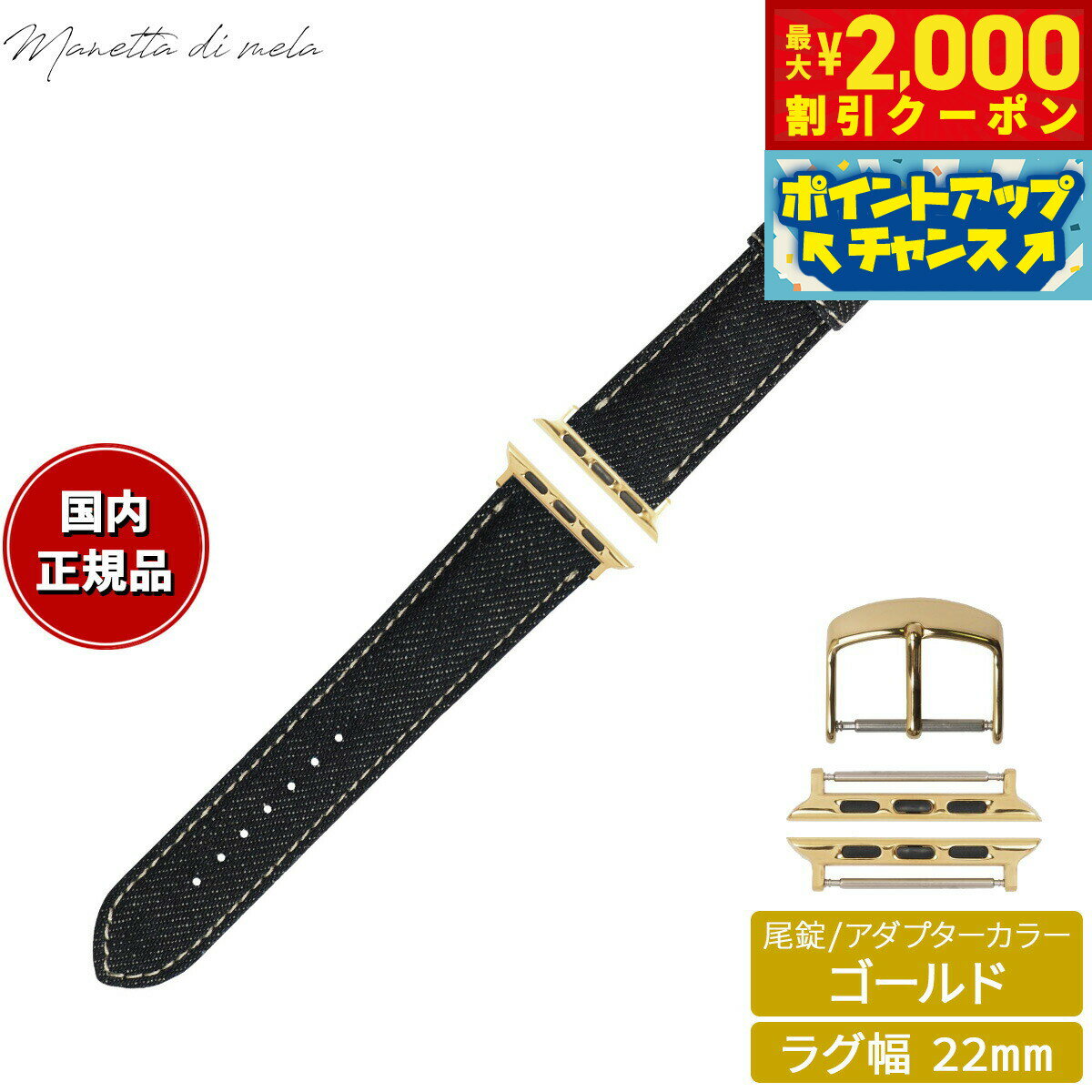 【最大2000円OFFクーポン!&店内ポイント最大52倍!本日限定!】マネッタ ディ メーラ Manetta di mela アップルウォッチ Apple Watch 替えバンド ベルト メンズ レディース 岡山デニム 22mm ノンウォッシュ ホワイトステッチ/ゴールド EDA-IWG22 7,150 ~