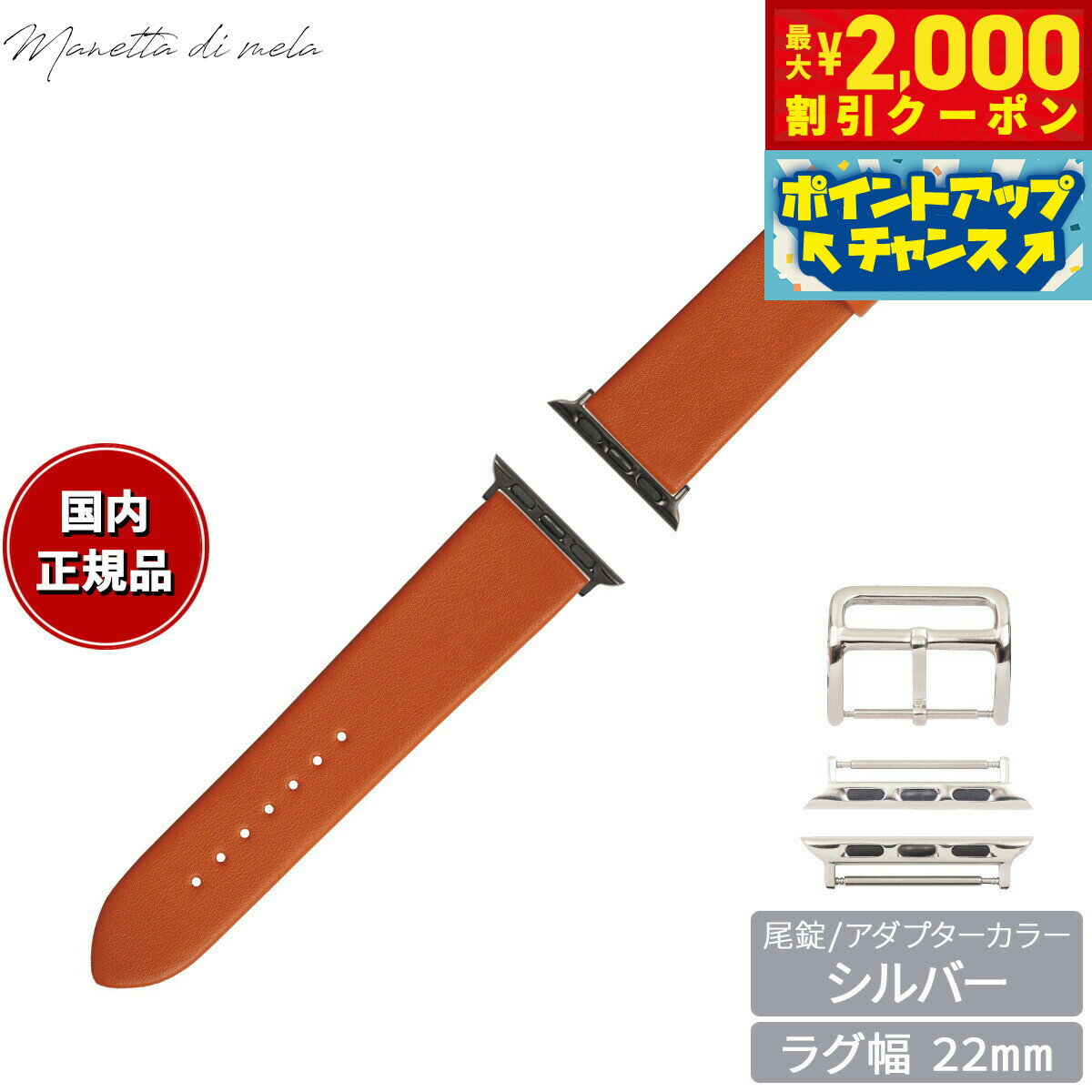 【最大2000円OFFクーポン!&店内ポイント最大52倍!本日限定!】マネッタ ディ メーラ Manetta di mela アップルウォッチ Apple Watch 替えバンド ベルト メンズ レディース トレソー イタリアレザー 22mm オレンジ/シルバー EFA-OR-S22 7,150 ~