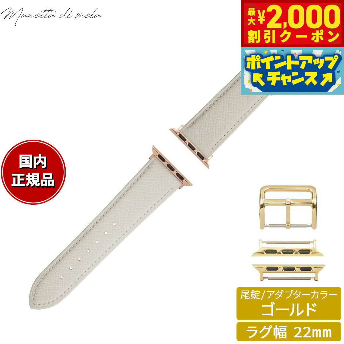 【最大2000円OFFクーポン!&店内ポイント最大52倍!本日限定!】マネッタ ディ メーラ Manetta di mela アップルウォッチ Apple Watch 替えバンド ベルト メンズ レディース ワープロラックス カーフレザー 22mm シルキーホワイト/ゴールド EWB-WH-G22 10,450 ~
