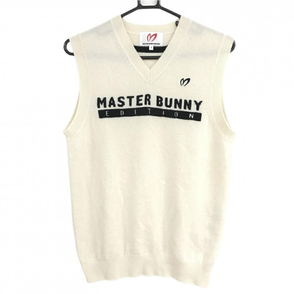 【美品】マスターバニー ニットベスト アイボリー×ダークネイビー 胸ロゴ カシミヤ100% メンズ 4(M) ゴルフウェア MASTER BUNNY EDITION 10,499 ~