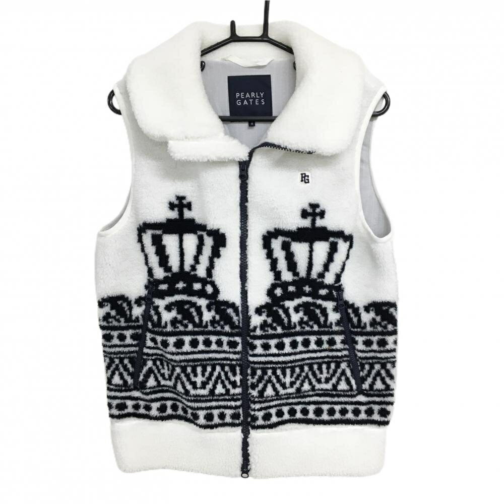 【美品】パーリーゲイツ ボアベスト 白×ダークネイビー 前面下部柄 蓄熱裏地 メンズ 4(M) ゴルフウェア PEARLY GATES 16,940 ~