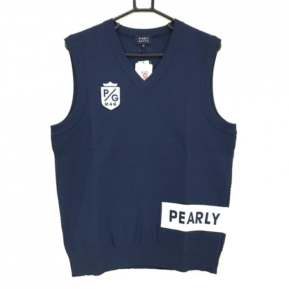 【新品】パーリーゲイツ ニットベスト ネイビー 織生地 ロゴ白 Vネック メンズ 6(XL) ゴルフウェア PEARLY GATES 15,730 ~