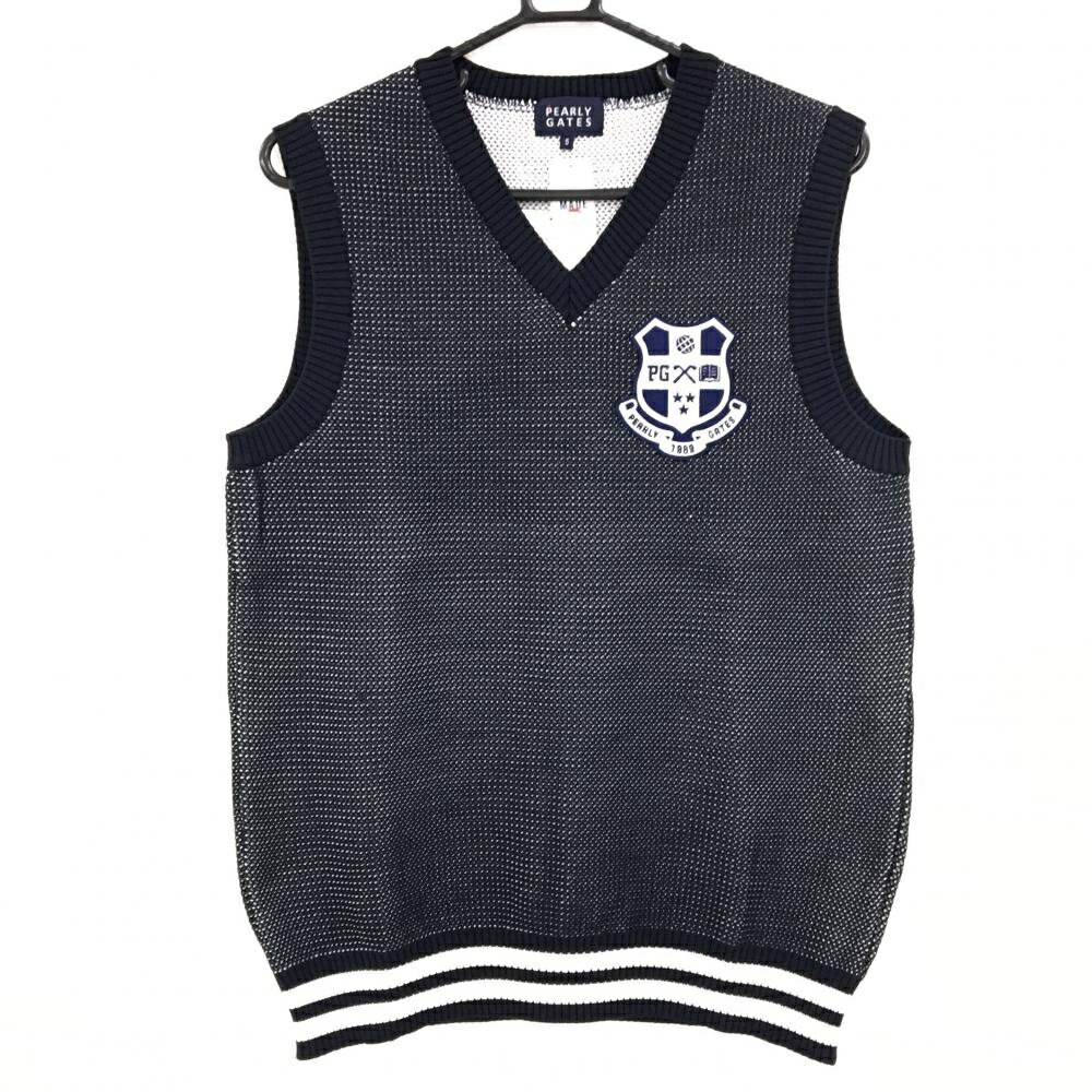 【新品】パーリーゲイツ ニットベスト ダークネイビー×白 メッシュ調 胸ロゴ Vネック メンズ 5(L) ゴルフウェア PEARLY GATES 15,730 ~