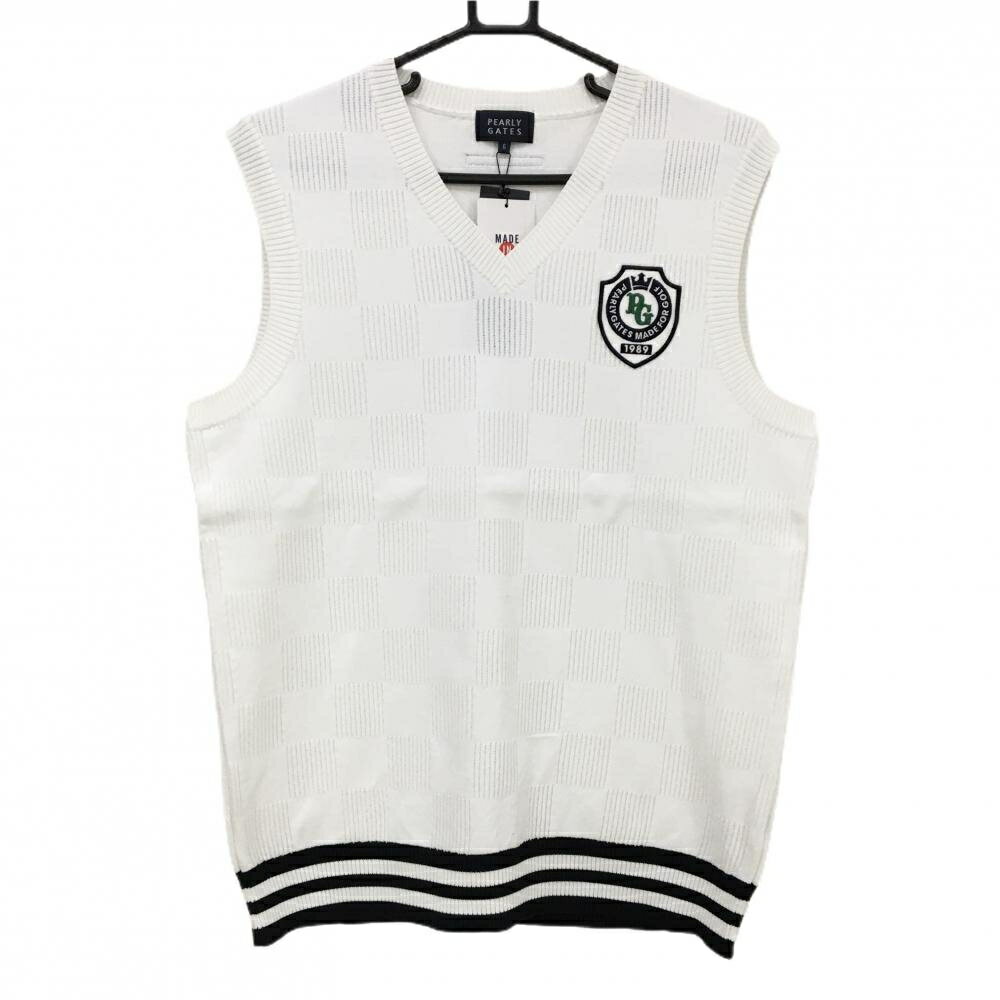 【新品】パーリーゲイツ ニットベスト 白 ブロックチェック風織生地 胸ロゴ Vネック メンズ 6(XL) ゴルフウェア PEARLY GATES 15,730 ~