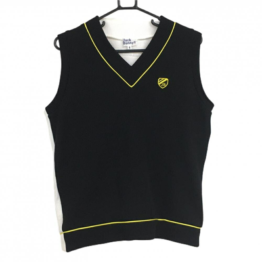 【美品】ジャックバニー ニットベスト 黒×白 ロゴイエロー Vネック メンズ 5(L) ゴルフウェア Jack Bunny 7,841 ~