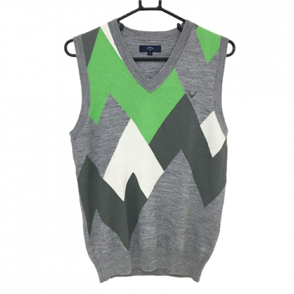 【美品】キャロウェイ ニットベスト グレー×グリーン Vネック ウール混 メンズ L ゴルフウェア Callaway 5,819 ~