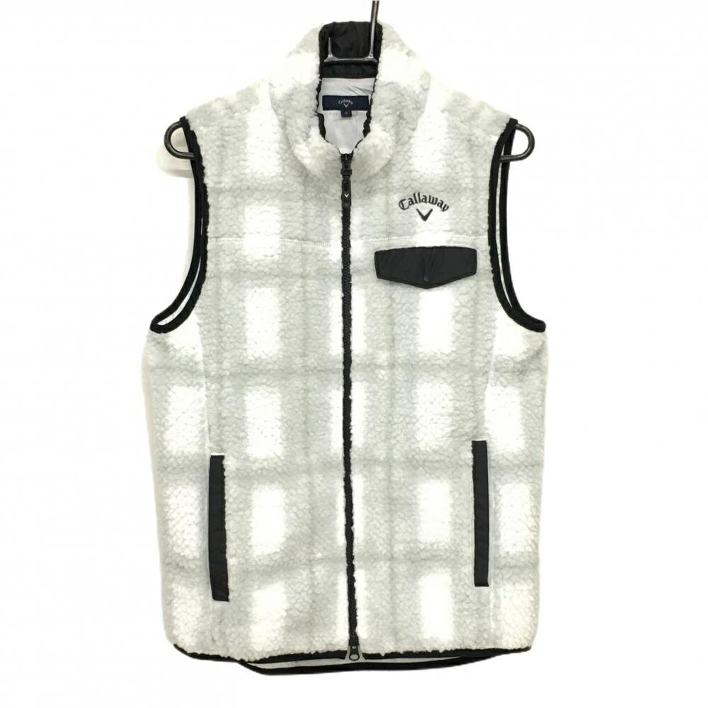 【超美品】キャロウェイ ボアベスト 白×ライトグレー チェック ダブルジップ 裏地付 メンズ M ゴルフウェア Callaway 8,221 ~