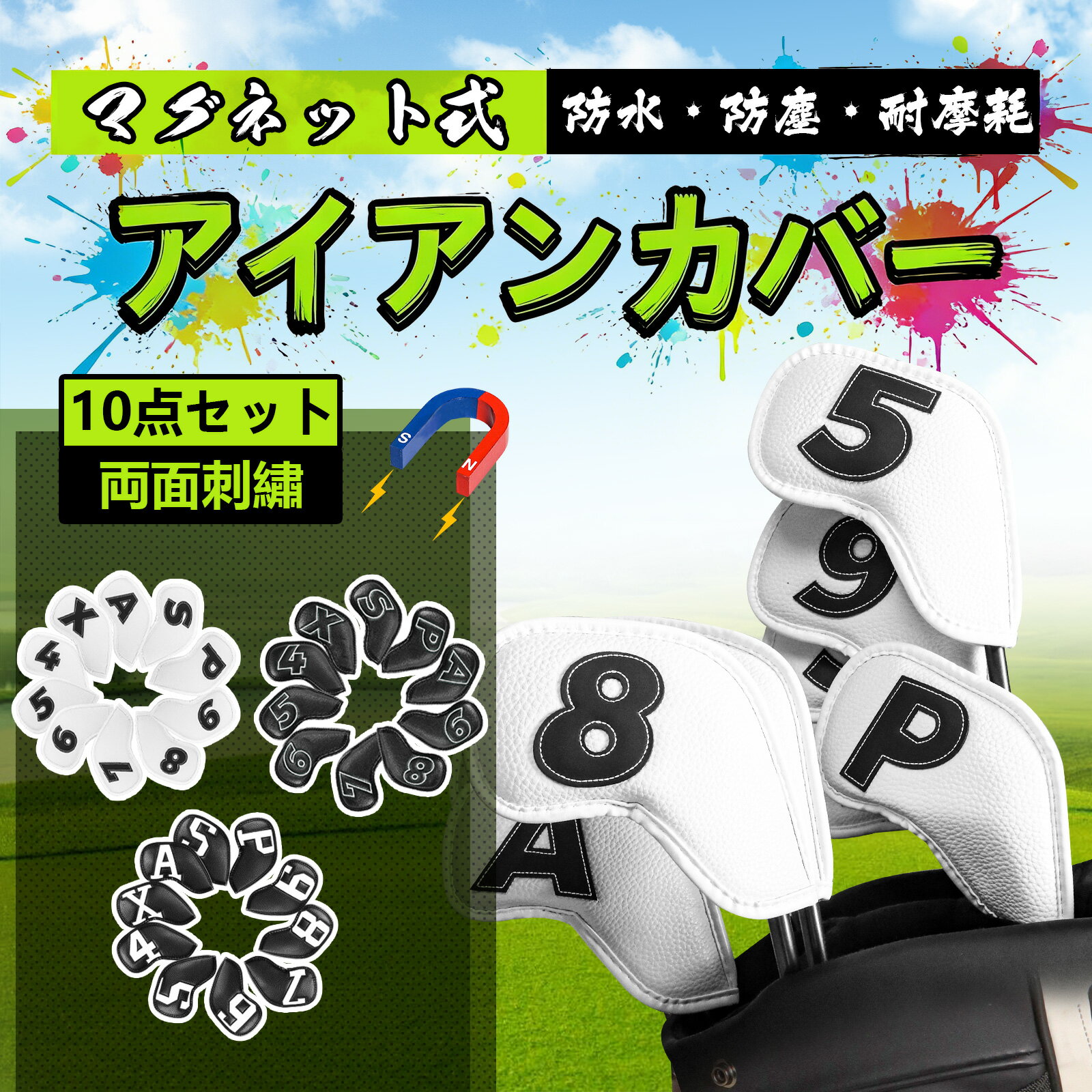 ゴルフアイアンカバー 10枚セット マグネット式開閉 ゴルフヘッドカバー ウェッジカバー 高級PUレザー 軽量 耐久性・撥水性・防塵性・耐摩耗 両面番号刺繍 究極のヘッド保護カバー 3,780 ~