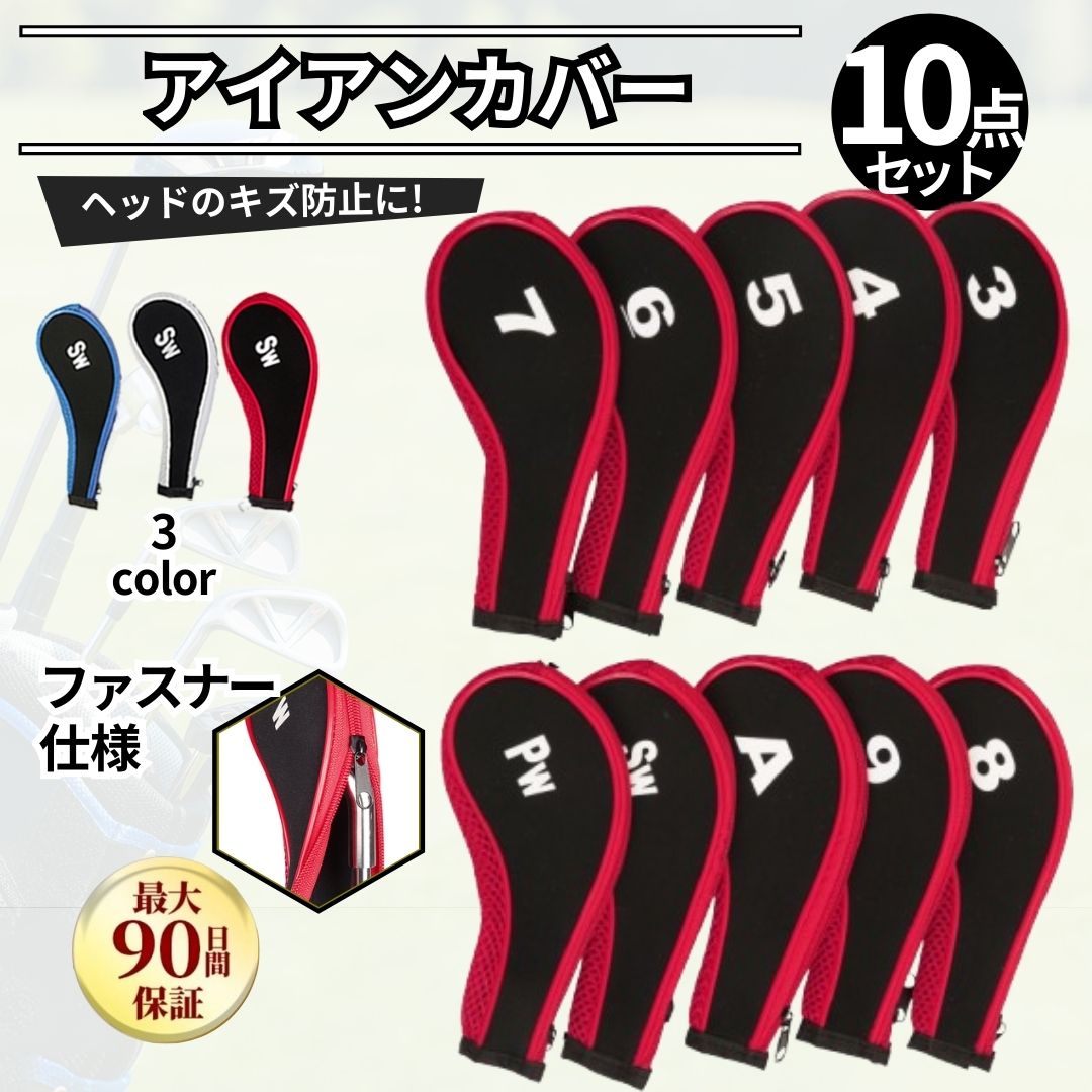 アイアンカバー セット 10点 10点セット ゴルフ カバー 単品 ファスナー ゴルフクラブ 赤 白 青 ヘッドカバー かっこいい おしゃれ アイアンカバー セット 10点 10点セット ゴルフ カバー 単品 ファスナー ゴルフクラブ 赤 白 青 ヘッドカバー かっこいい おしゃれ 【ヘッドの傷防止】内装にクッション性の高い素材を採用し、ヘッドをキズからしっかり保護。 サイドにメッシュパーツを使用し、通気性も確保したカバーです。 【ファスナー式】上部まで大きく開閉可能なファスナーで、出し入れのしやすさも特徴です。 【番手付きカバー】番手番号付き 3/4/5/6/7/8/9/PW/A/SW10点セットになります。 アイアンヘッドとウッドヘッドのぶつかりによる凹みやクラブのシャフトのキズも防ぐことができます。 ステンレス素材や軟鉄素材のアイアン関係なく、アイアンにもヘッドカバーをつけることをお勧めします。 セット内容:番手(#3〜9,P,A,S) 計10個入りカラー: レッド、ブルー、ホワイトサイズ:ヘッド部 約 縦5.8cm×横10cm×幅2.5cm / ジッパー部 約 20cm※ユーティリティには未対応になります。 おしゃれ オレンジ 緑 エナメル 明細 犬 高級 レザー 革 本革 個別 刺繍 セット ニット 肉球 窓付き マグネット メッシュ ゴルフコンペ 参加賞 送料無料 景品 クラブカバー 5 フェアウェイウッド用 おし リアルな ゴルフ ヘッドカバー ぬいぐるみ 動物 選べる8色】ゴルフ キャラクターグッズ ヘッドカバー 3,391 ~