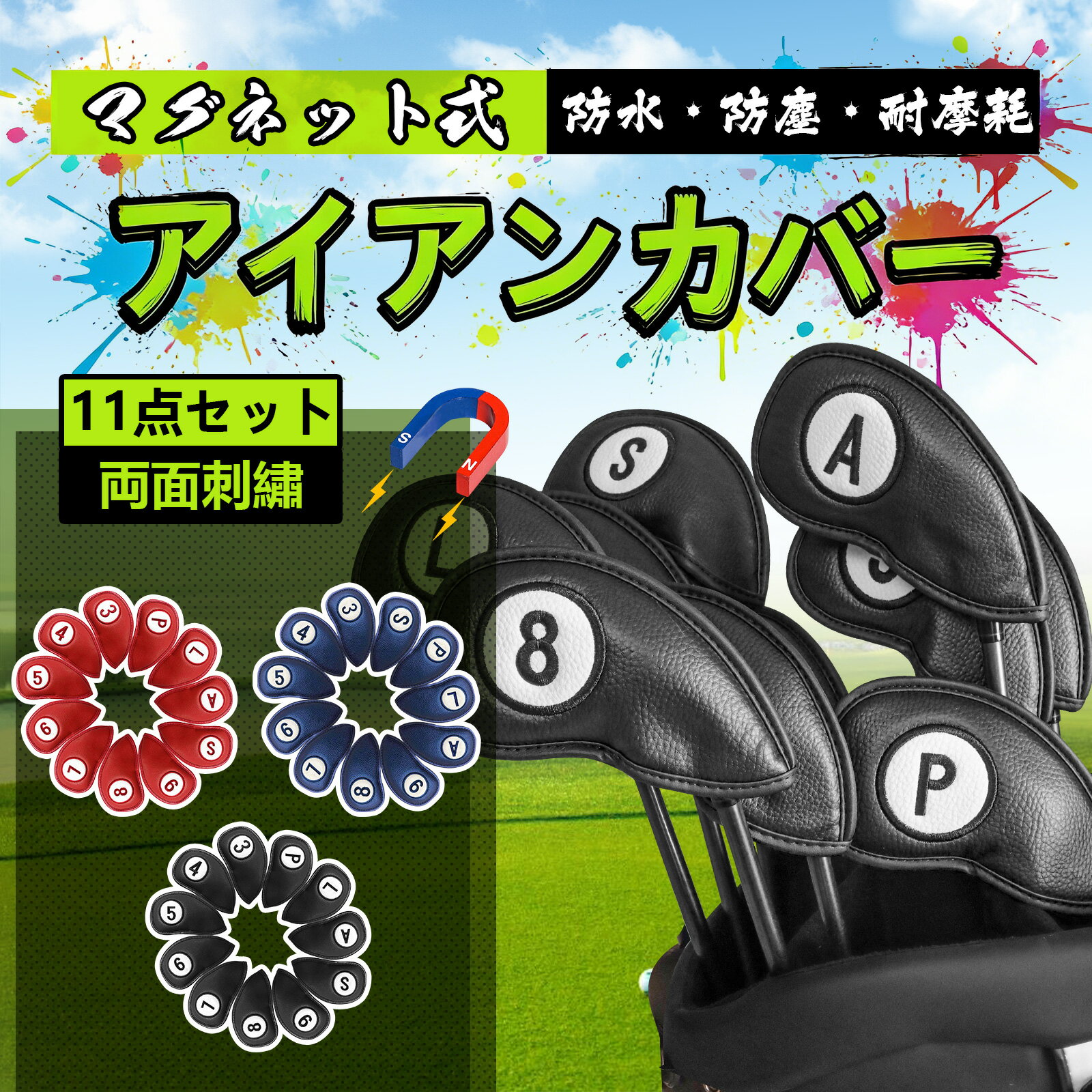 ゴルフアイアンカバー マグネット式開閉 番号刺繍 11枚セット ゴルフヘッドカバー ウェッジカバー 高級 PUレザー 軽量・耐久性・撥水性・防塵性・耐摩耗 究極のヘッド保護カバー 3,680 ~