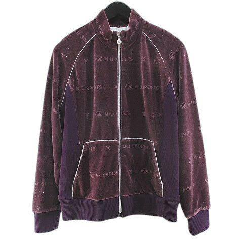 【中古】エムユースポーツ M・U SPORTS ゴルフウェア 長袖 ベロア ジャケット 42 紫系 パープル ジップアップ 総柄 ラメ リブ 切替 日本製 レディース 【ベクトル 古着】 251028 1,500 ~