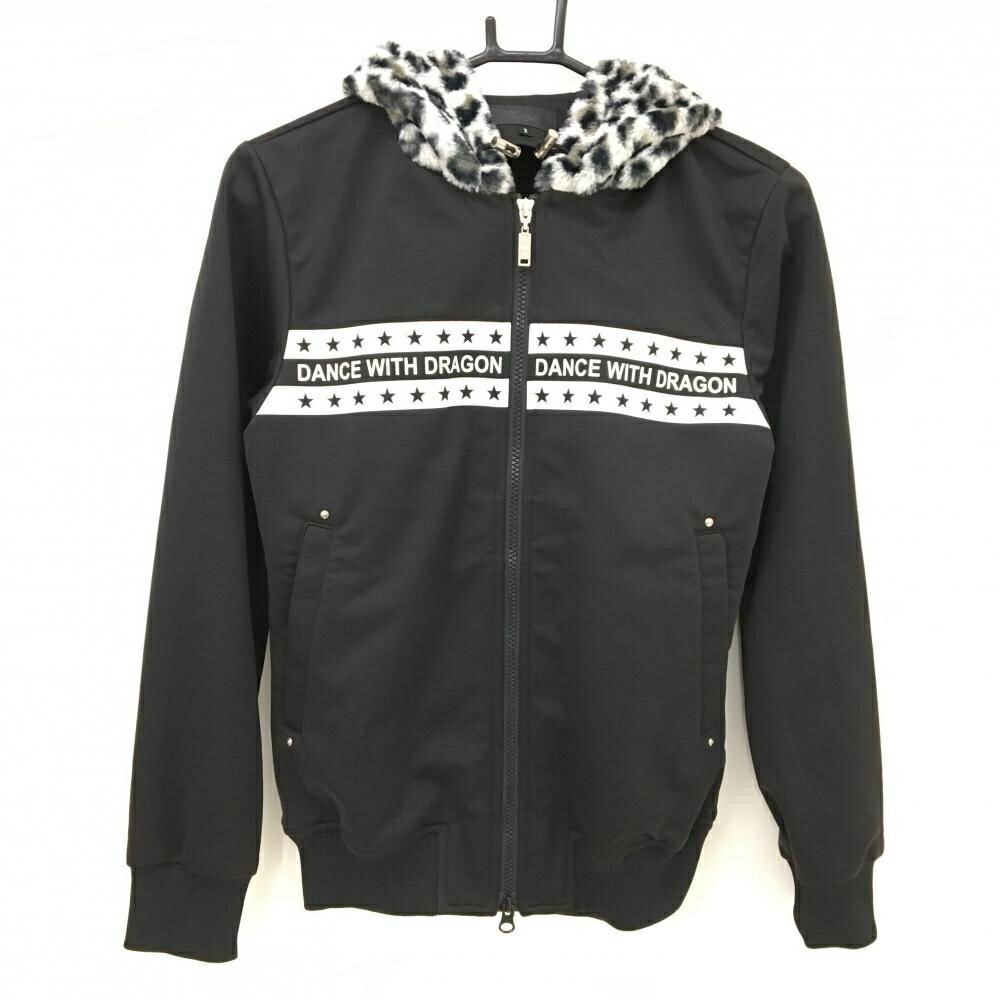 【超美品】ダンスウィズドラゴン ジップパーカー 黒×グレー フードレオパード柄・ファー レディース 2(M) ゴルフウェア Dance With Dragon 7,568 ~